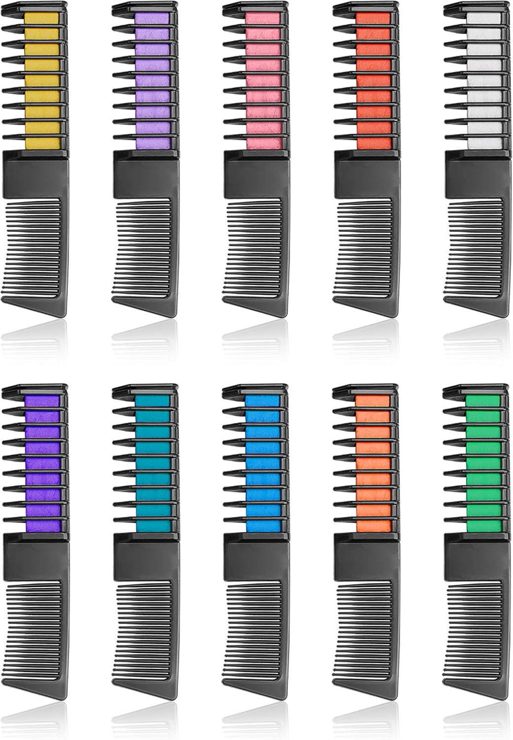 10 POPULAR BRIGHT COLORS – The combination of warm colors and cool colors can be used for various styles, mix them all or use them individually to get beautiful layers of hair color. You can add temporary streaks and create unique hairstyles with these colorful hair chalk comb.