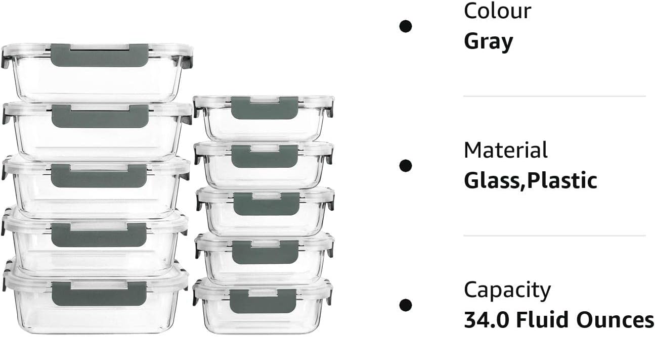 [10-Pack]Glass Meal Prep Containers -MCIRCO Food Storage Containers with Lifetime Lasting Snap Locking Lids, Airtight Lunch Containers, Microwave, Oven, Freezer and Dishwasher