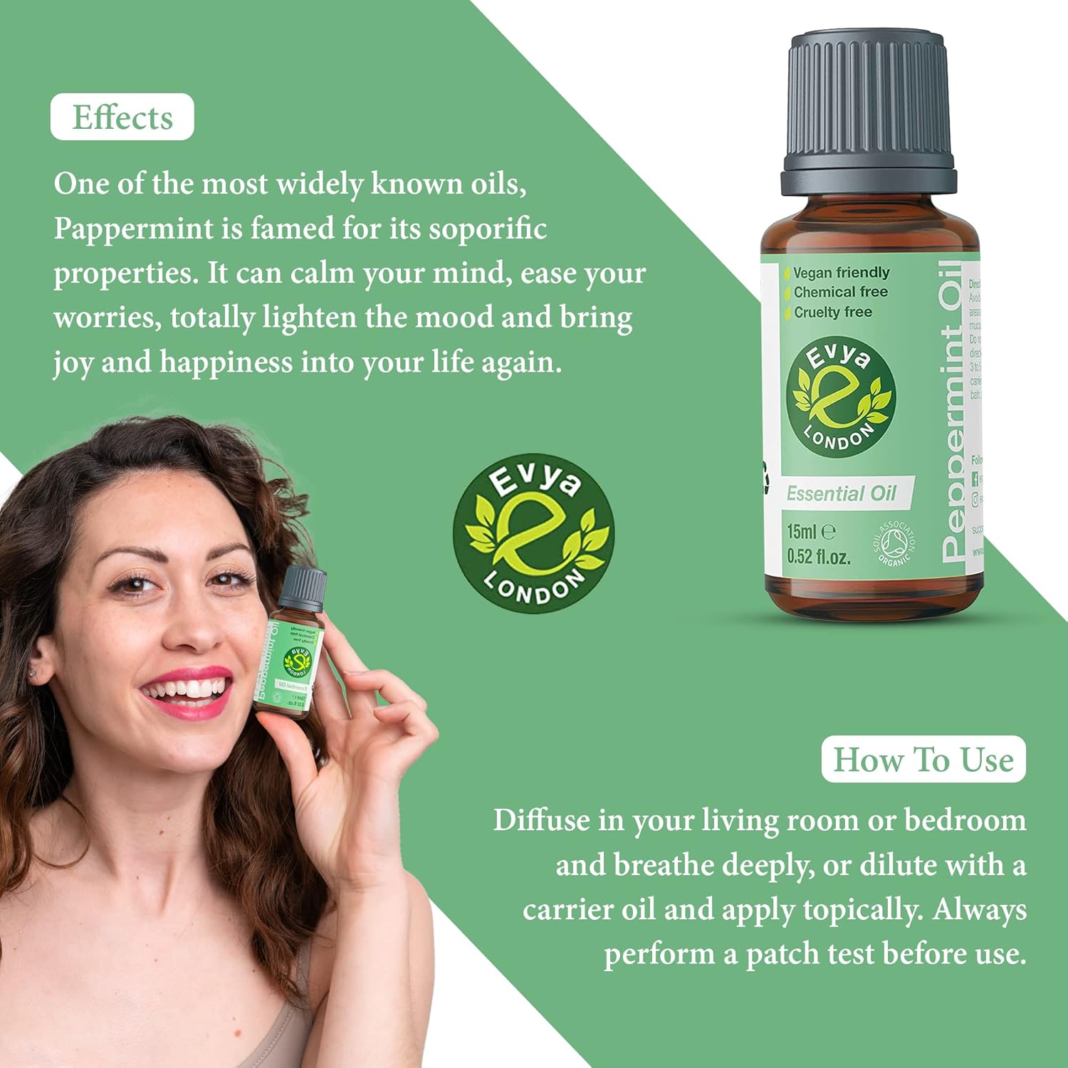 100% Natural Organic Peppermint Essential Oil 15ML Therapeutic Grade for Hair Care, Skin Care, Bath, Diffuser Undiluted & Cruelty Free