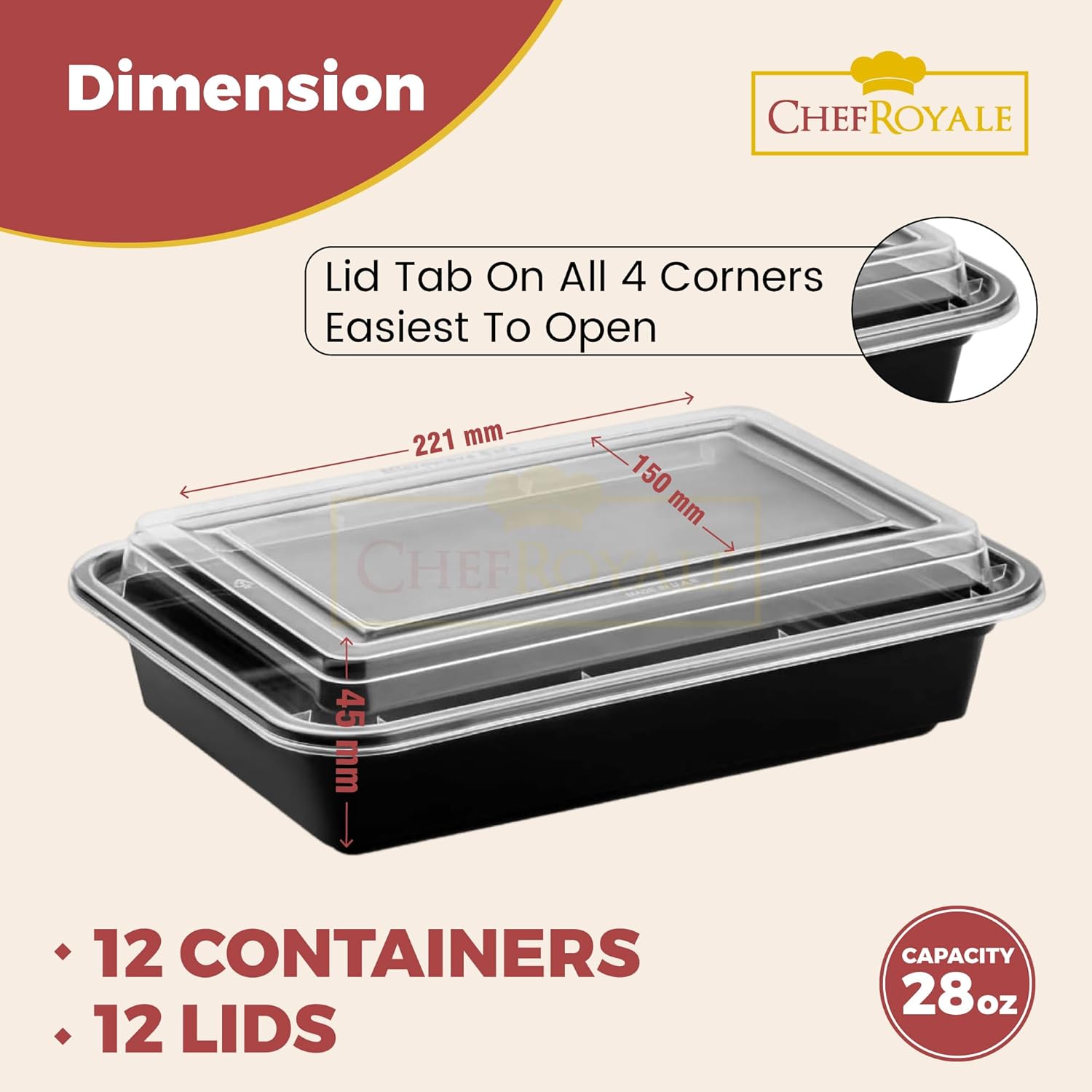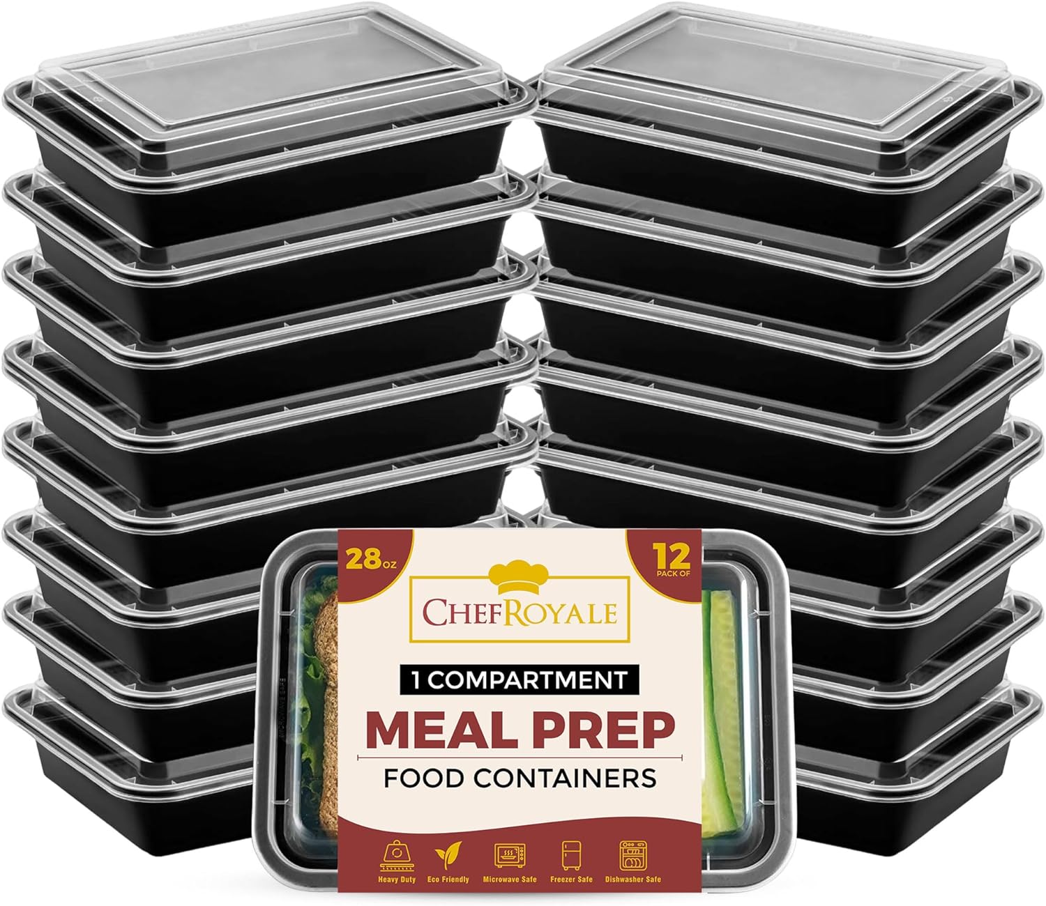 [12 pack] 28oz Meal Prep Containers- BPA Free Storage with Airtight Lids – Microwave, Freezer, and Dishwasher Safe – Stackable Lunch Boxes (12 SETs, 1 Compartment, 28oz)- Recyclable, Reusable