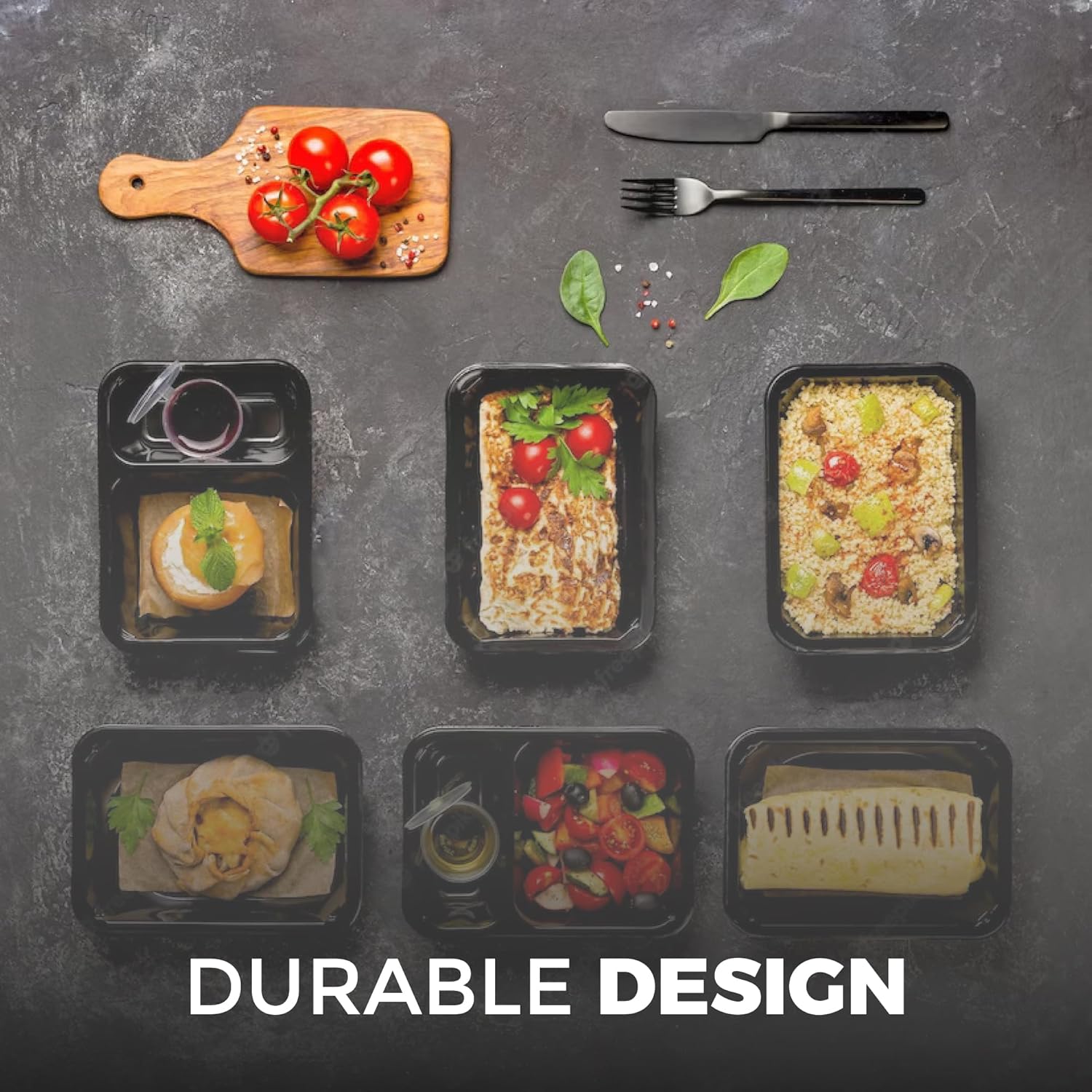 Premium Polypropylene Construction: Our Chef Royale 2 Compartment Meal Prep Containers are crafted from 100% polypropylene, a high-quality, durable, and food-safe material. You can trust the safety and integrity of your meals with this premium polypropylene construction.