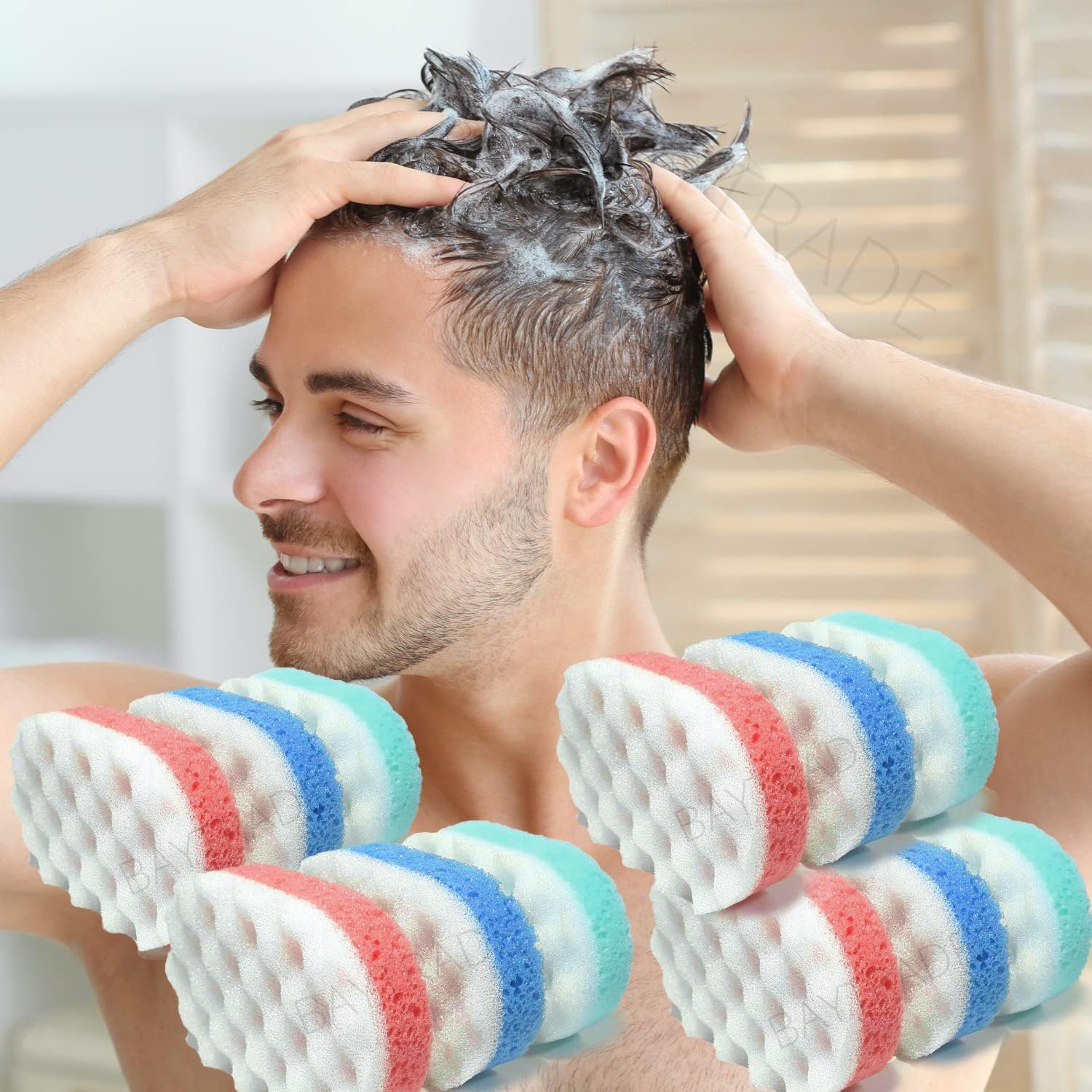 12 x Bath Sponge for Adults – Exfoliating Body Shower Scrubber for Men Women Kids Children – One Smooth Side – One Rough Side to Exfoliate (12)