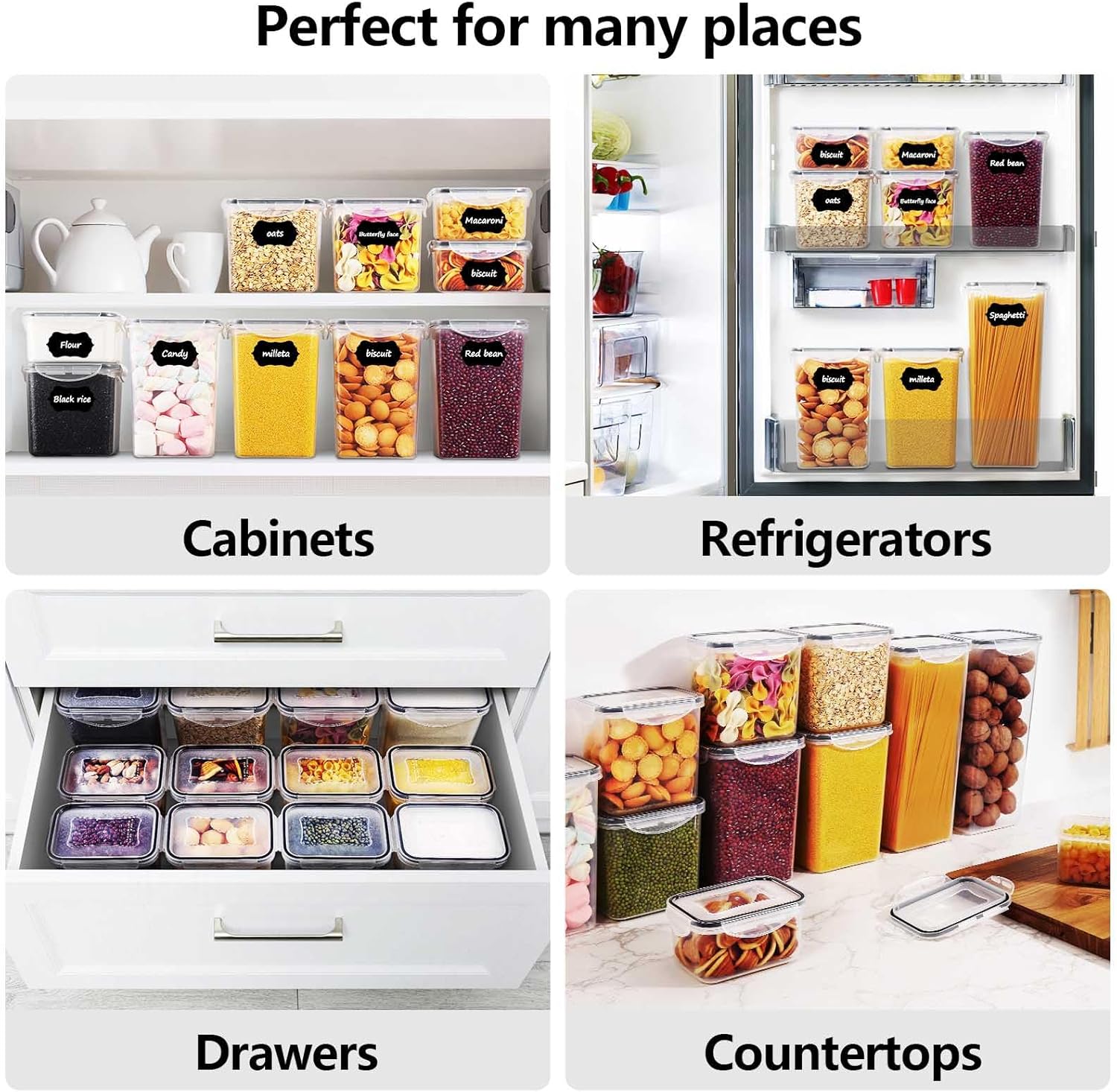 4 Size Combinations Fit Your Needs – This pantry organization comes with 4 large tall containers (2.0L/2.11Qt), 4 large containers (1.3L/1.37Qt), 4 medium containers (0.9L/0.95Qt), and 4 small containers (0.43L/0.45Qt). Perfect for storing spaghetti, baking supplies, cereal, flour, sugar, oats, pasta, rice, coffee, tea, snacks, nuts and other dry goods