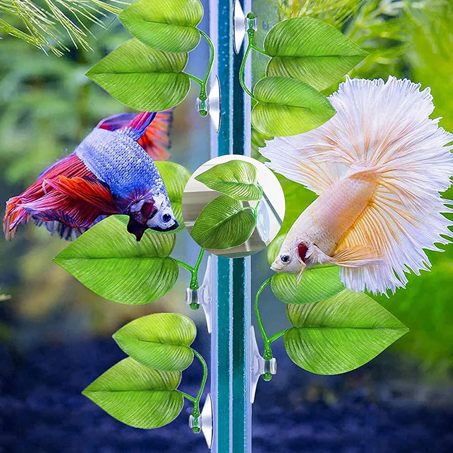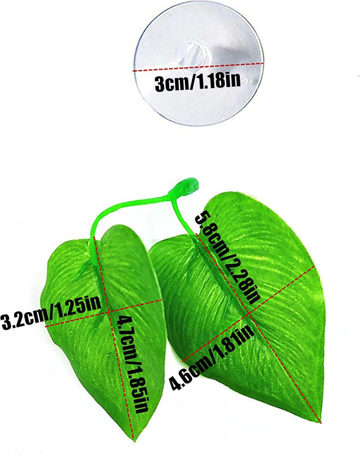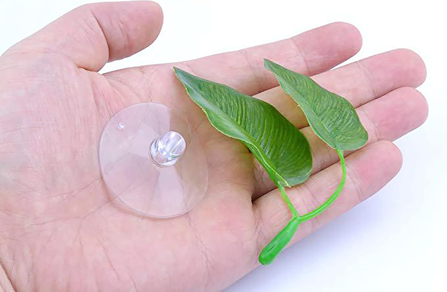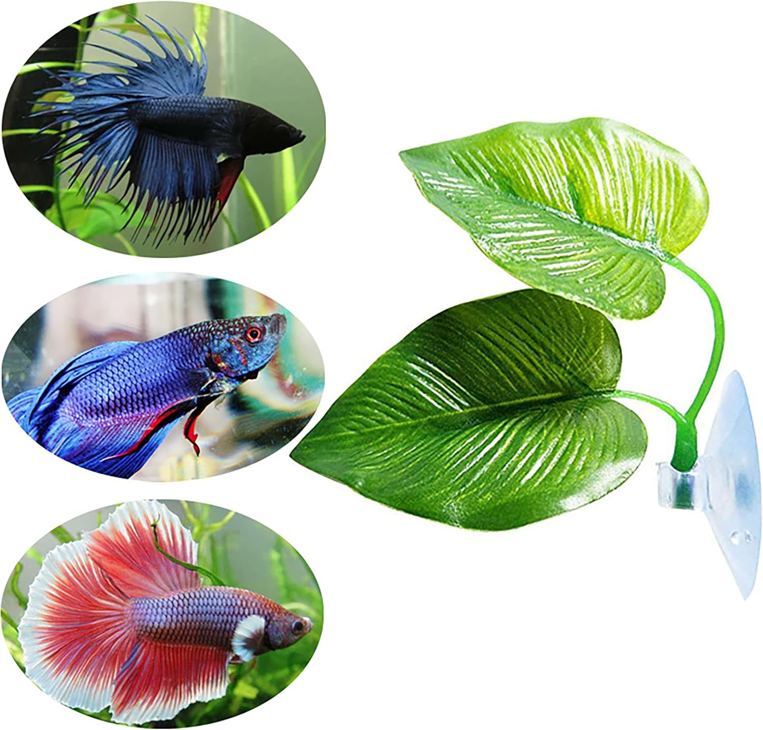 Simulation leaves with suction cup, the larger leaf is 5.8×4.6cm, and the smaller leaf is 4.7×3.2cm, which are very suitable for Betta to sleep, rest, hide, play and breed.