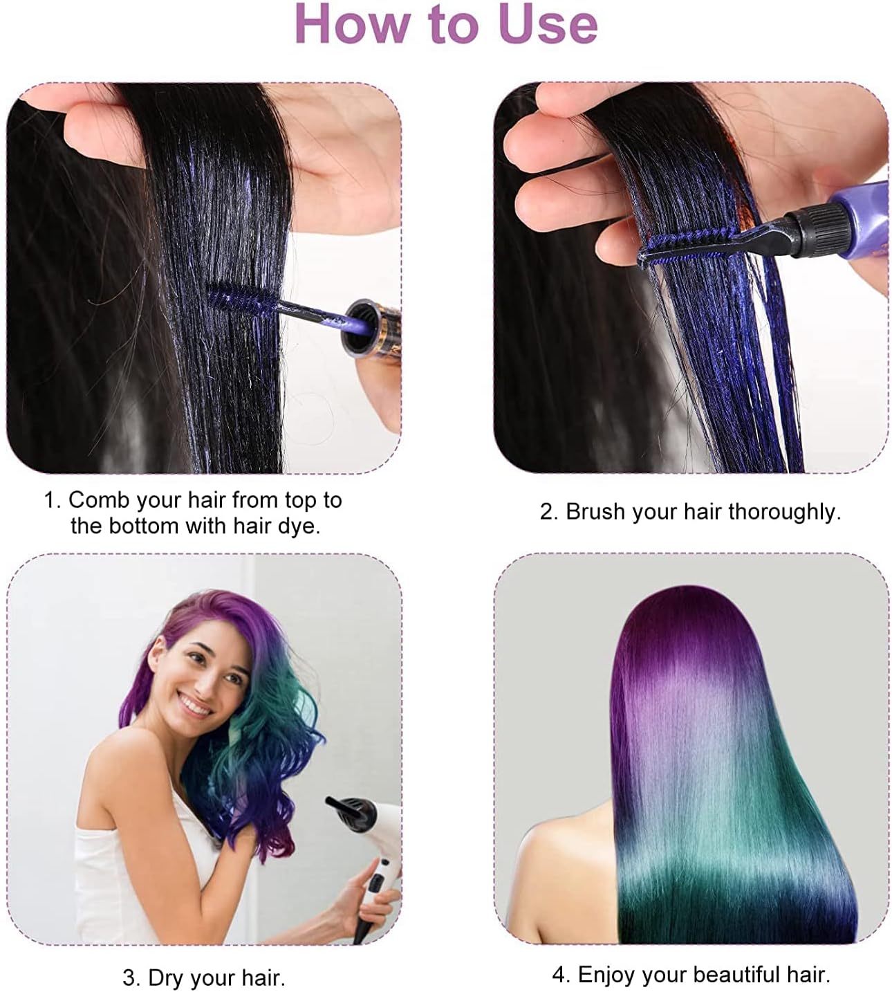 【Easy to Use and Clean】The rainbow hair dye is very convenient and easy to use,just open the Hair chalk,then daub with chalk pens and blow dry hair. The temporary hair colour spray for kids can quickly adds colors to your hair!You can DIY your favorite hair color with the hair chalks for women at home, and wash off easily with shampoo.