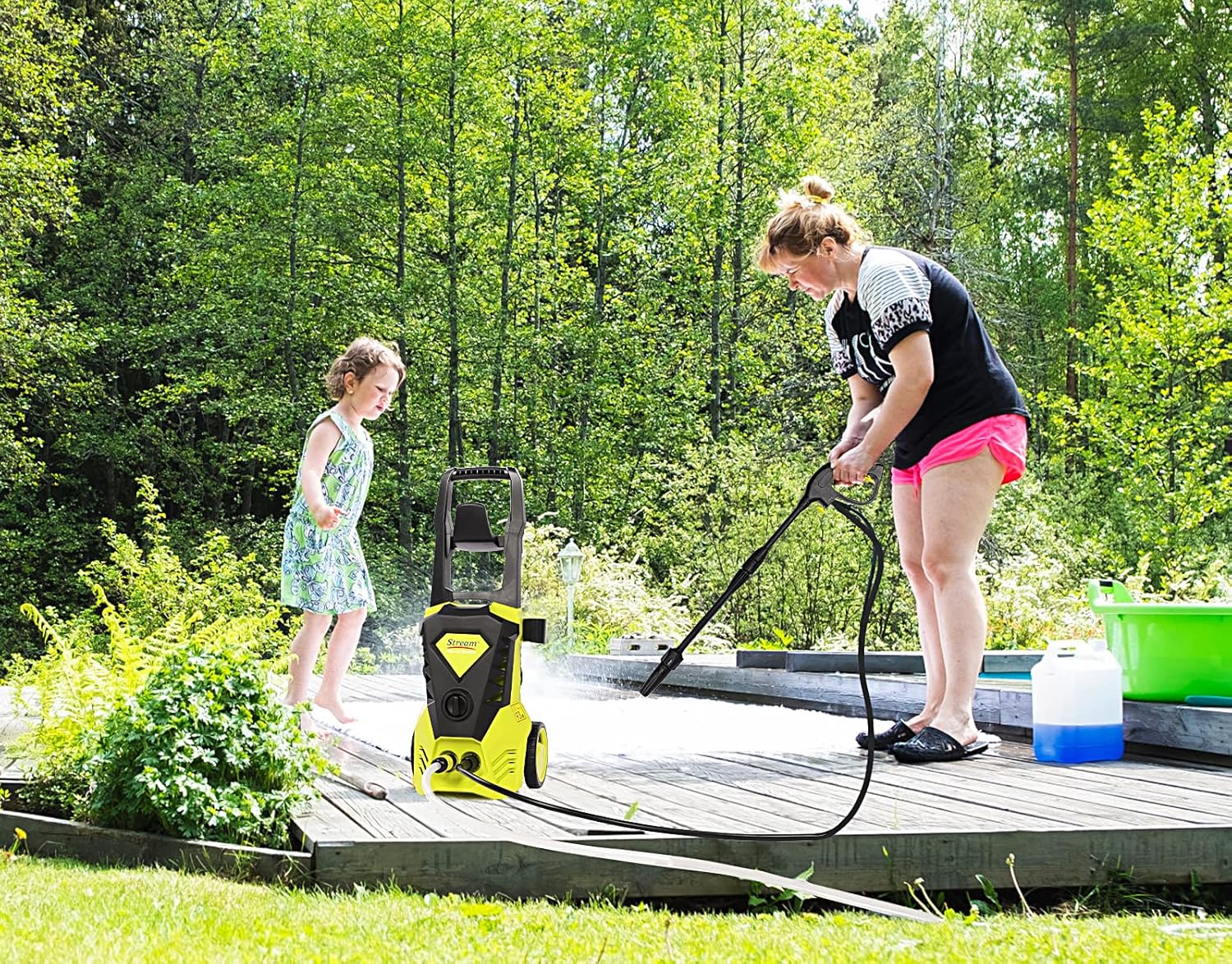 【Powerful High Pressure Washer】 The 2000W pressure washers could provide up to 450 liter’s/h 150bar water flow, enough for removing deep-seated dirt, cement, pavement, pools, outdoor furniture, cars, trucks and more. IPX5 waterproofing systemic