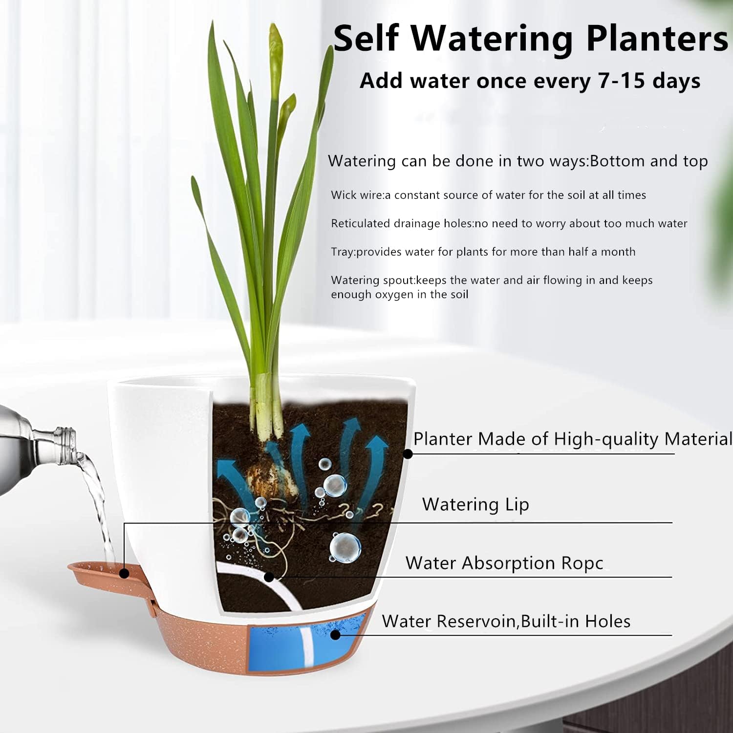 Plant Pots Indoor,Self Watering Plant Pots of 3,Flower Pots with Drainage Holes and TraysPlant Pots Indoor,Self Watering Plant Pots of 3,Flower Pots with Drainage Holes and Trays
