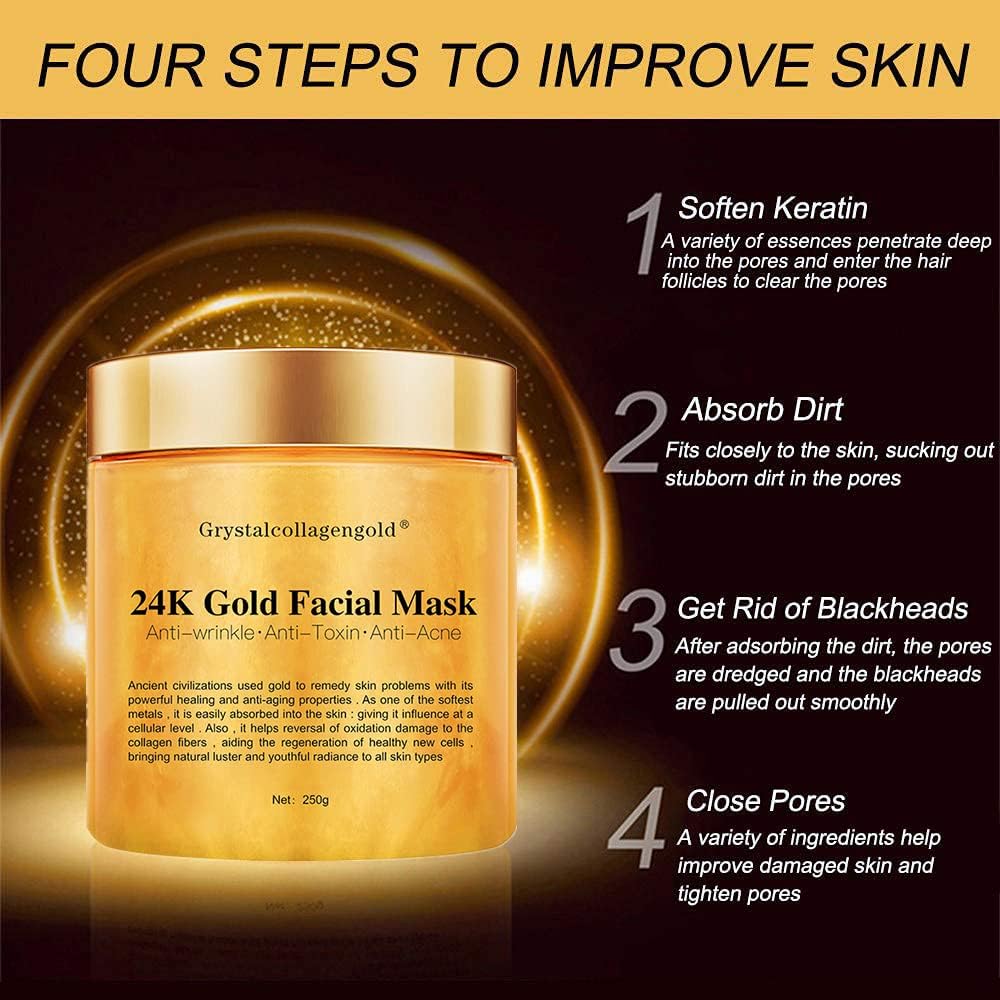 【EXCELLENT ANTI-AGENT CAPACITY】Gold Mask contains moisturizing, lightening and anti-aging ingredients. This mask can effectively remove excess oil from the surface of the skin and pores and thoroughly cleanse to remove contaminants trapped in the pores. Based on the strong cleaning ability, the product can eliminate blackheads from the skin and effectively balance oil secretion