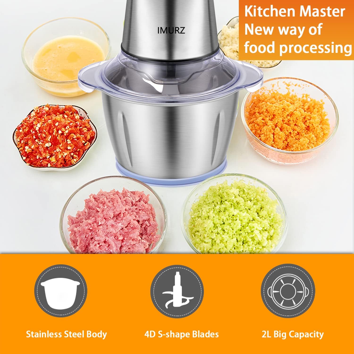 2L Electric Mini Food Chopper Food Processor Meat Grinder,4 Bi-Level Blades,500 W Stainless Steel Bowl Kitchen Mincer Blender for Meat, Vegetables, Fruits, Onion and Nuts,Garlic Baby Food