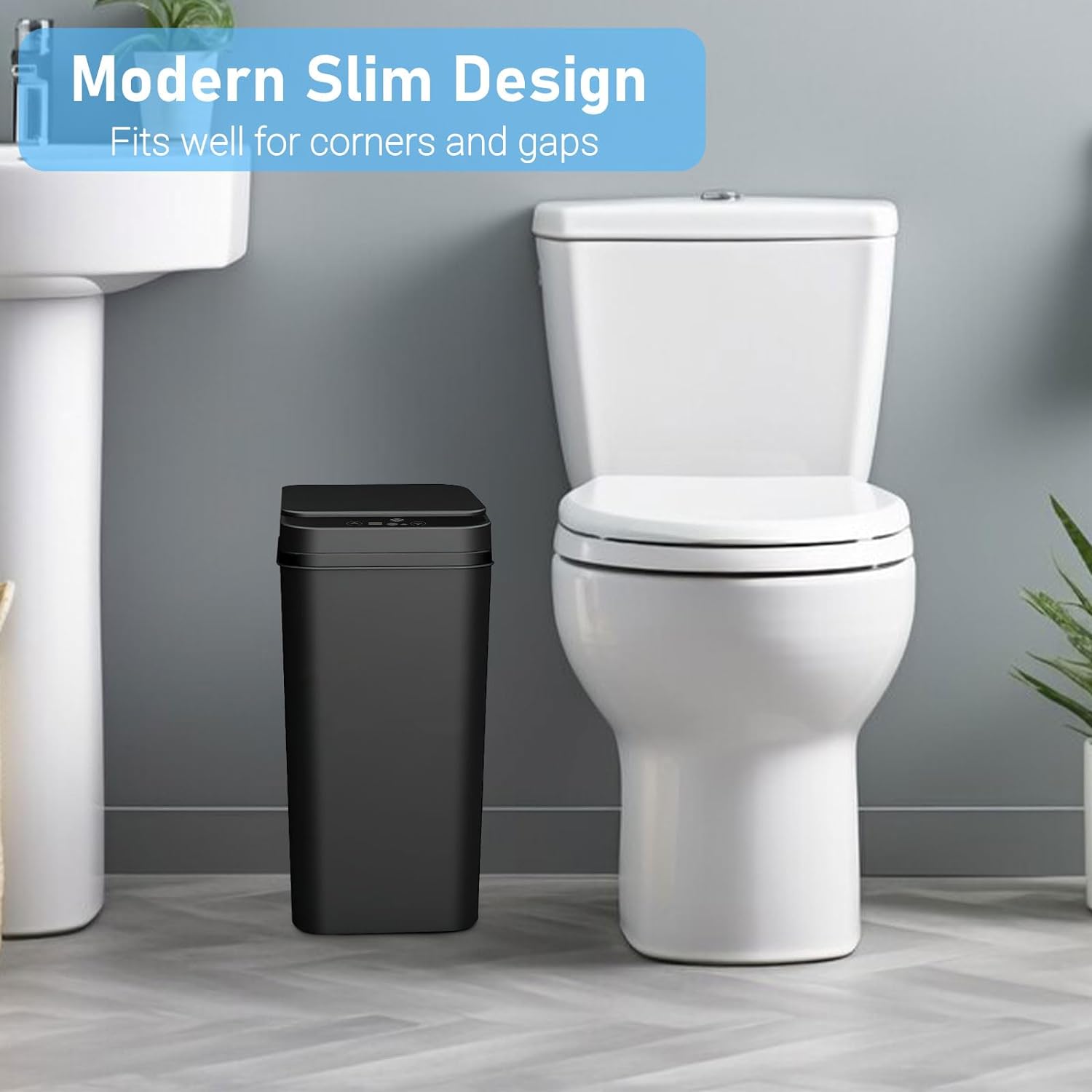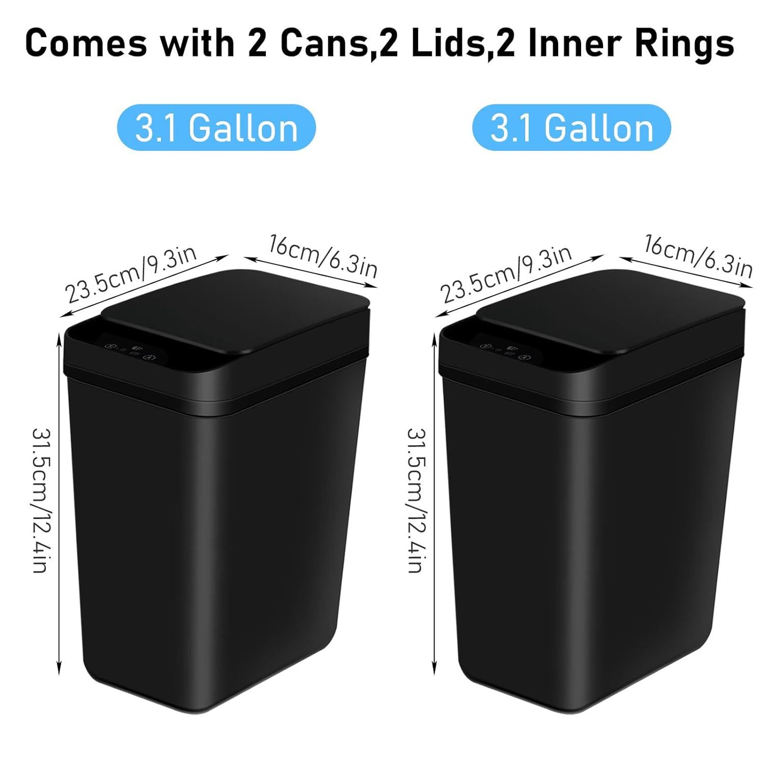 2Pack Automatic Bathroom Trash Can, 3.1Gallon Touchless Motion Sensor Small Garbage Can with Lid Smart Electric Narrow Waterproof Garbage Bin for Bedroom Office Kitchen (Black)