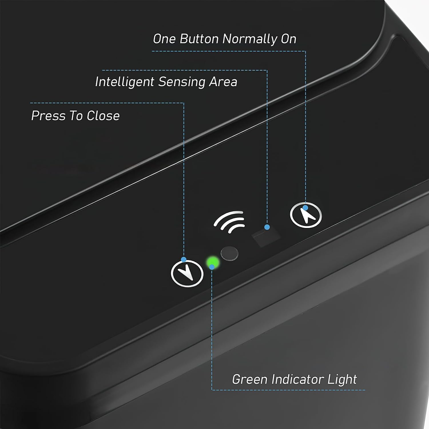 ★【Touchless Trash Can】Our motion sensor trash bin uses advanced automatic sensing technology, you can simply wave your hands above the infrared motion sensor field, and the lid will open automatically, allowing you to dispose of your waste without touching the can.In addition to the motion sensor, this induction trash can also offers a manual mode. This feature comes in handy when you prefer to open and close the lid yourself.