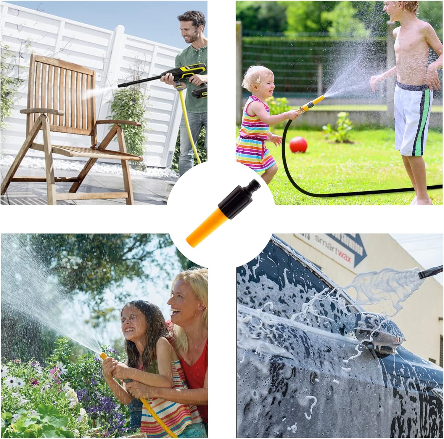 ✅Hose nozzles suitable for watering flowers and other plants ,cleaning car, walkway, patio, gutters, deck or to shower dog during hot summer days.