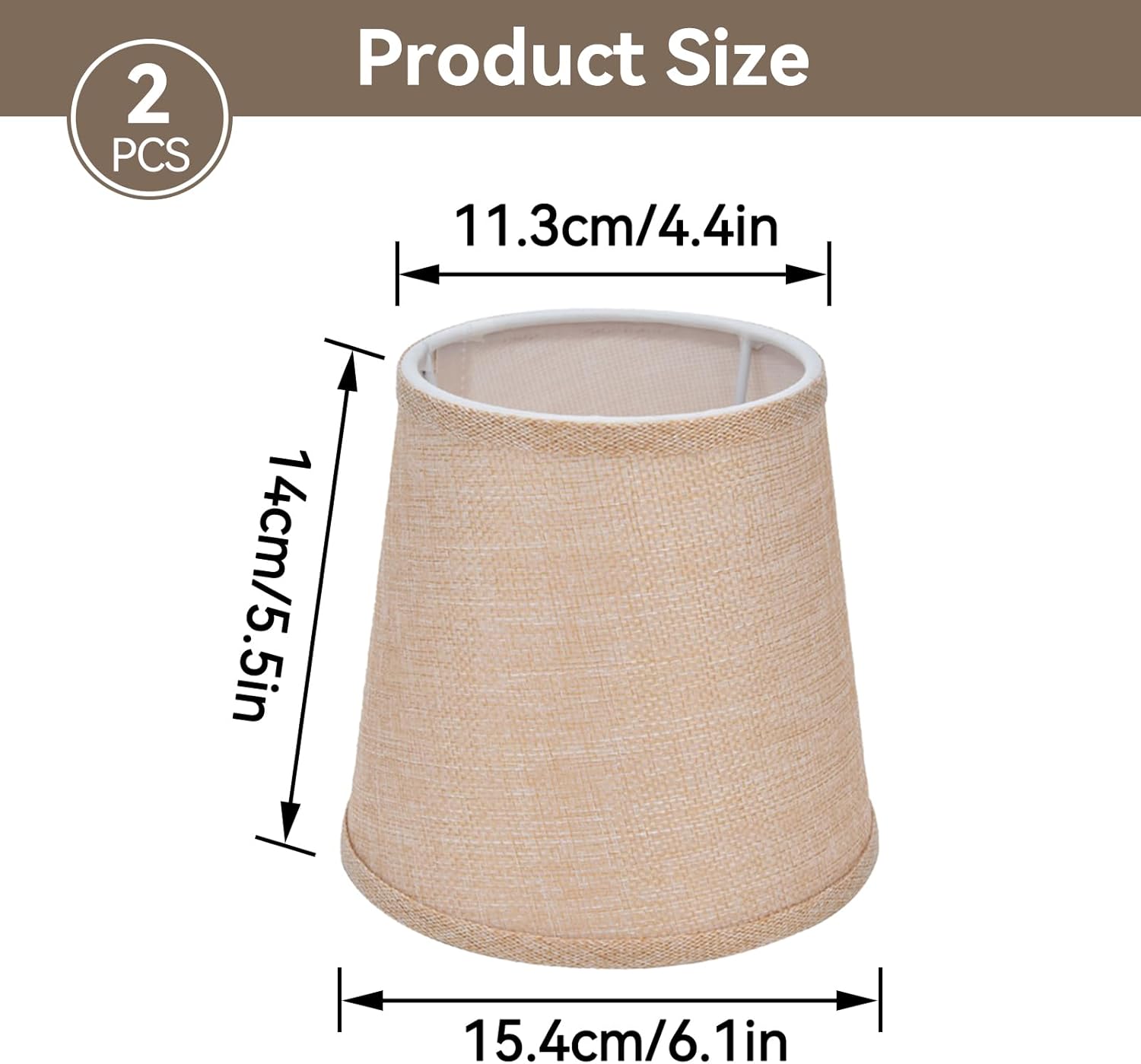 2Pcs Cloth Lamp Shades,Burlap Lamp Shades for E14 bulbs,Bedside Light Lampshades Wall Light Crystal Chandeliers Lamp Shades,Small Lampshades Fabric Lampshade for Table Lamp,4.4×6.1×5.5inch