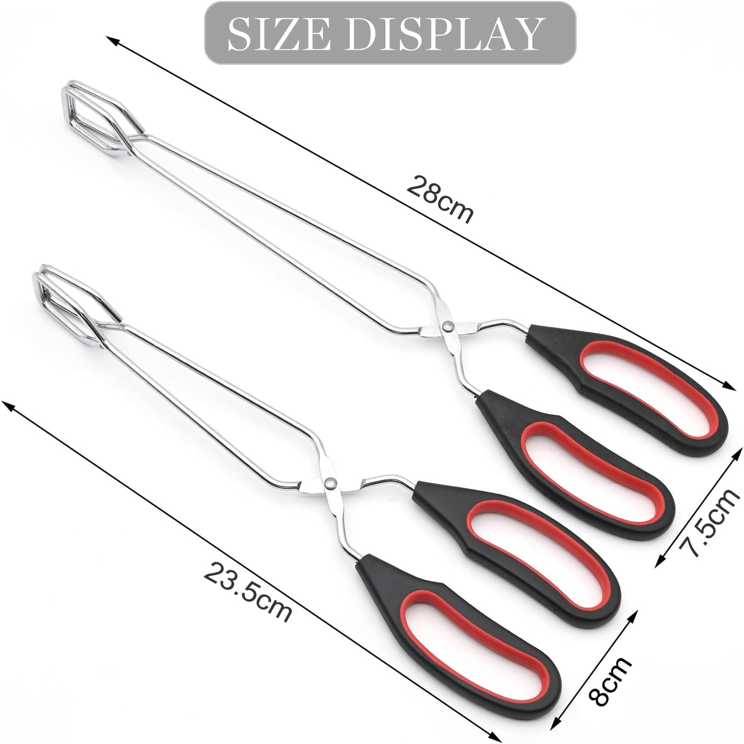 Safety Handle Design: The handle has a protective cover, better protects your hands from cutting by the edge when you grip the handle. Easy to control the handle and to eliminate wobbling & any risk of burning your hands. Makes holding items with it a more pleasant experience, you can use the cooking scissor tongs to clip and flip different sizes of food