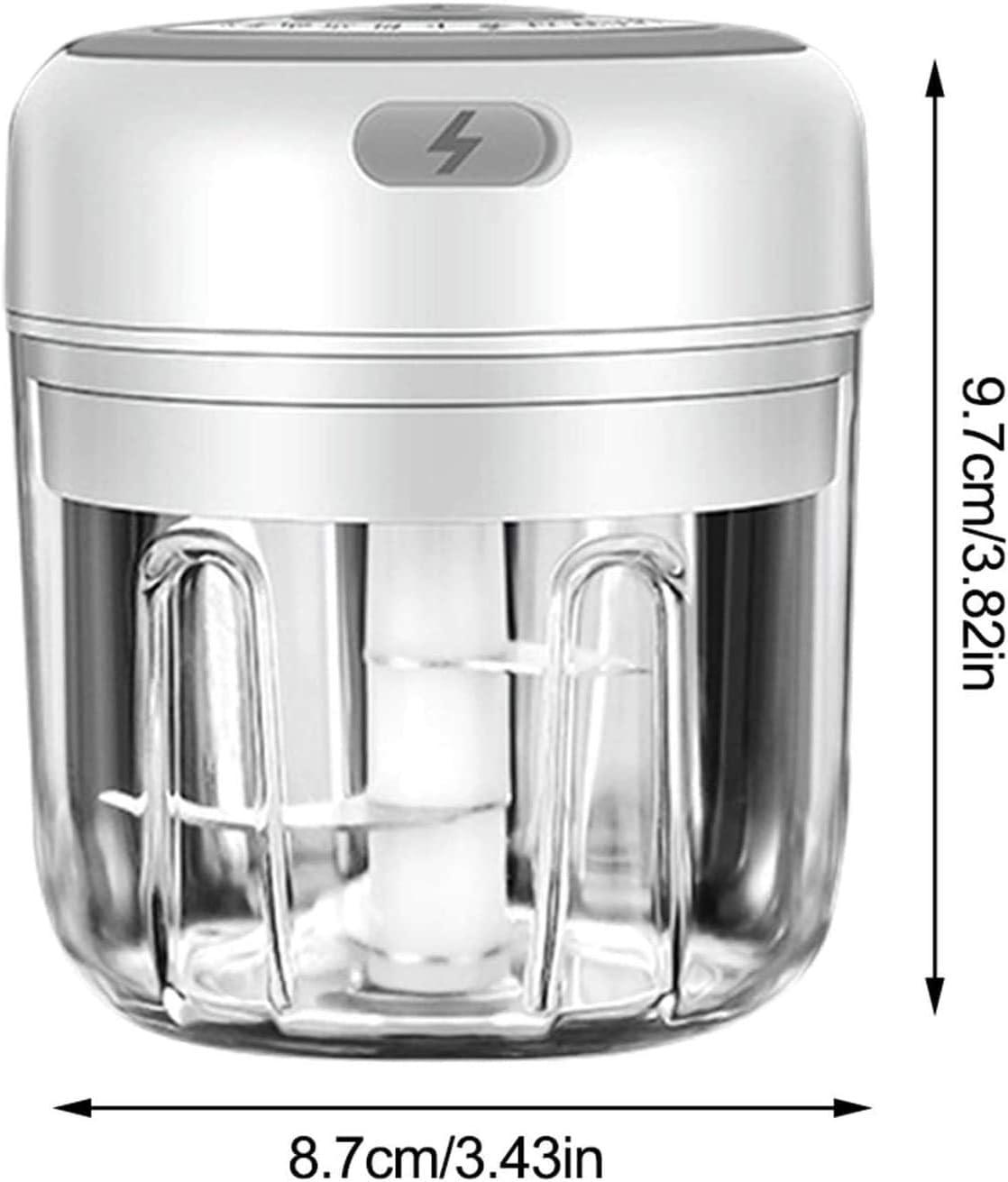 [Multi-function kitchen tool] Kitchen food processor with electric function, saving time and effort. It is very suitable for chopping and grinding various ingredients, such as meat, onions, garlic, ginger, peppers, carrots, vegetables, nuts, etc. It is an ideal gift for friends, family or outdoor travel. (The package contains 1 motor head, 1 250ML cup, 1 100ML cup, 2 blades)