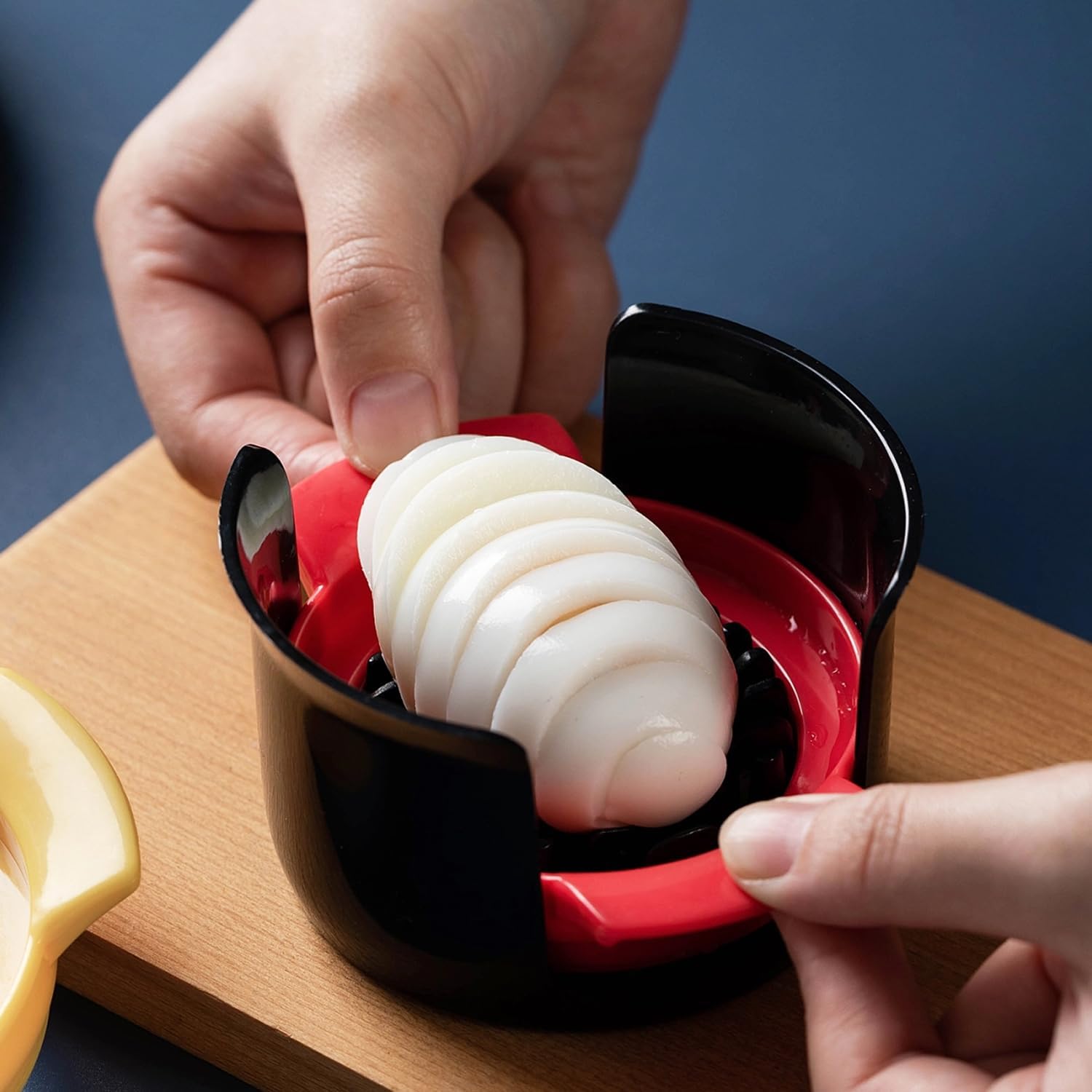 ▶【Easy to Use】Egg cutter for hard boiled eggs,easy to use,just put the peeled eggs or soft fruit on the base, slice the it into uniform fractions easliy and quickly.