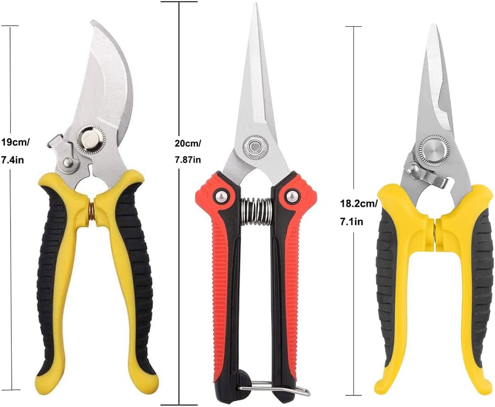 3 pack Garden Secateurs,Stainless Steel Pruning Scissors Kit with Blade Locking, Ergonomic Garden Shears Set for Fruit Branch, Hedge,Fruits & Vegetables, Plants(with Non-slip Gloves)