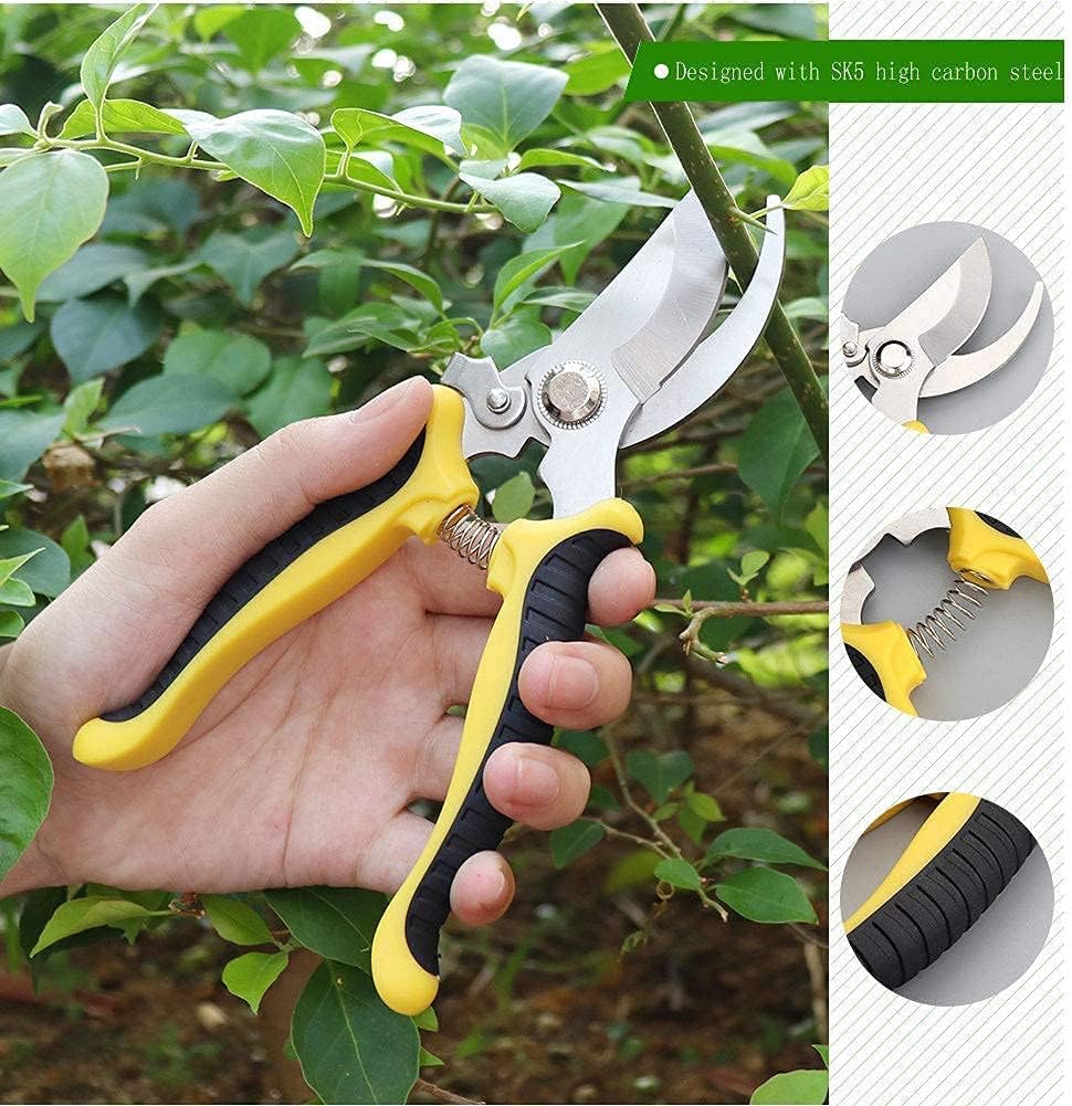 Non-slip handles: The non-slip ergonomic handles reduce strain on your hand for less fatigue while pruning. Premium quality: It is made of PVC and SK5 steel, with high hardness, sturdy, heavy duty and sharp. Improve efficiency: Use less effort with its razor sharp SK-5 blades.Safety lock: Easy to adjust the blade tension for a precise, clean cut.Application: Ideal for gardening, landscaping, and heavy duty trimmingEffortless: Effortless spring design help to improve efficiency.