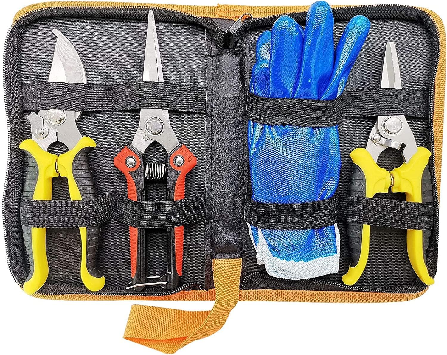 The pruning scissors kit with stainless steel precision-sharpened blades, easy and smooth cut. Anti-slip and ergonomic handle make the gardener clippers more comfortable in your hand. 【Suitable For Different Trim Needs】: The gardening shears set comes with 3 different shape blades, straight blade, serrated blade, curved blade for a variety of general pruning tasks.