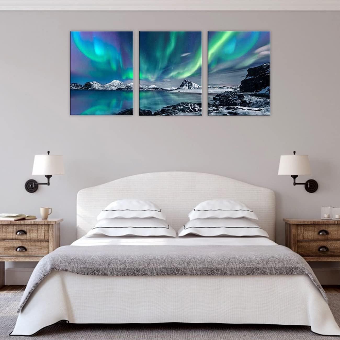 Nature Wall Decor: 3 panel Aurora canvas print painting is very suitable for hanging in your home, living room, bedroom, kitchen, apartment, office, hotel, dining room, bathroom, bar, etc.A Perfect Christmas and New Year ,Wedding, Anniversary, Thanksgiving, Christmas, Mother’s Day, Father’s Day, Valentine decorations.