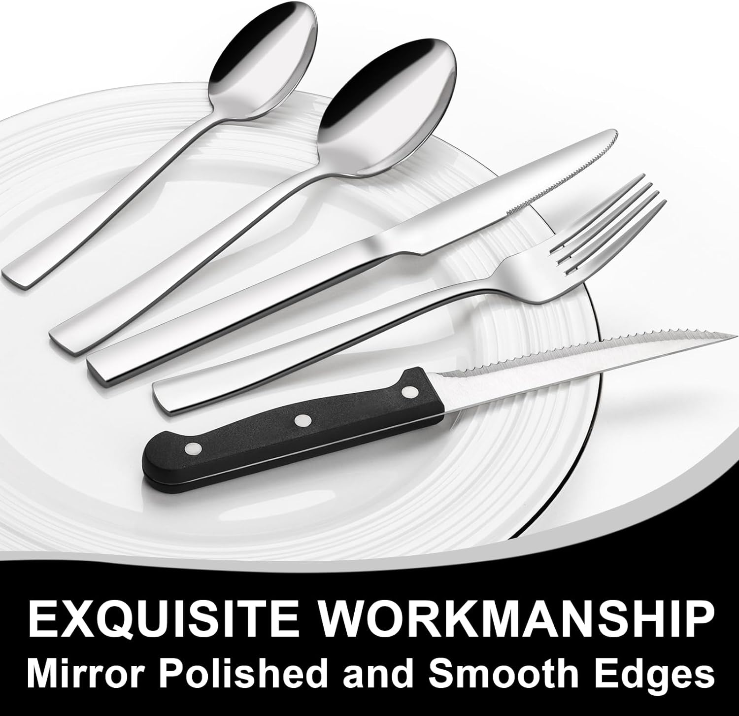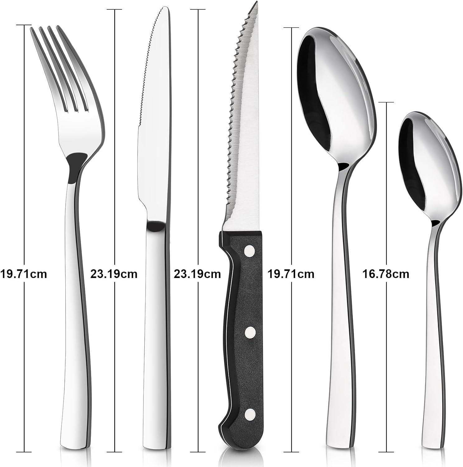 【Exquihttps://homeandgardentrends.co.uk/ Craftsmanship & Ergonomic Design】Smooth edges and the classic shape design make the utensils look exquihttps://homeandgardentrends.co.uk/. There are no rough spots or sharp edges on the knives, forks and spoons, which are very comfortable to use without hurting your mouth. In addition, our dinner knives and steak knives have sharp blade, the large serrations contain smaller serrations to ensure the sharpness and the ergonomic handle make you comfortable and easy to use