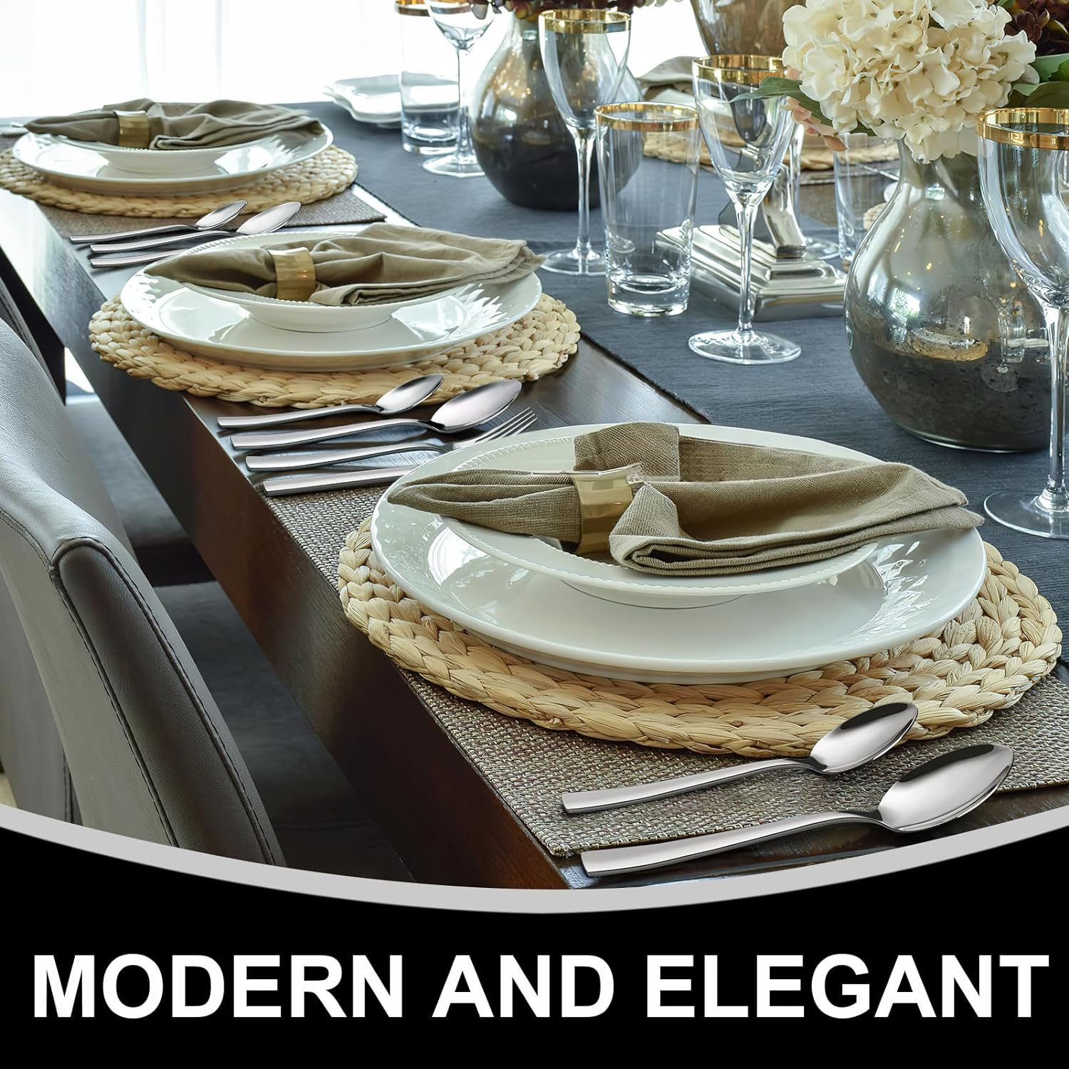 Complement your dining with an effortlessly elegant silverware setThe flatware set is perfect for family daily use, parties, family dinner, camping, hotel, restaurant, formal dinner, etc.It’s the perfect choice for setting your table, which would bring your eating environment into next level and enhance your dining experience.