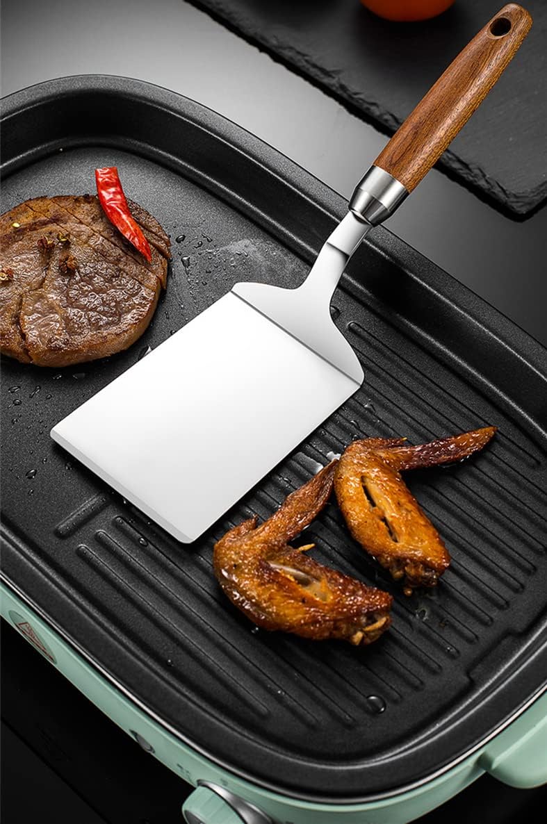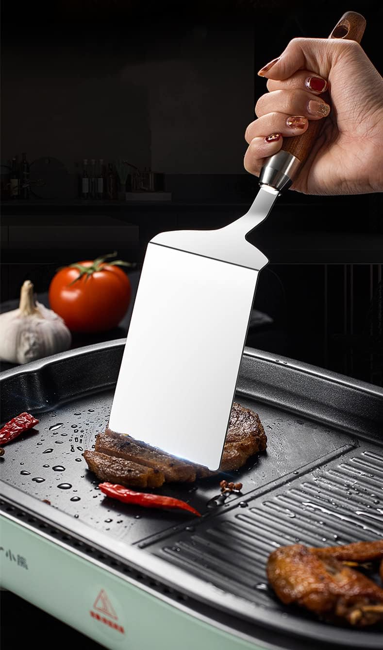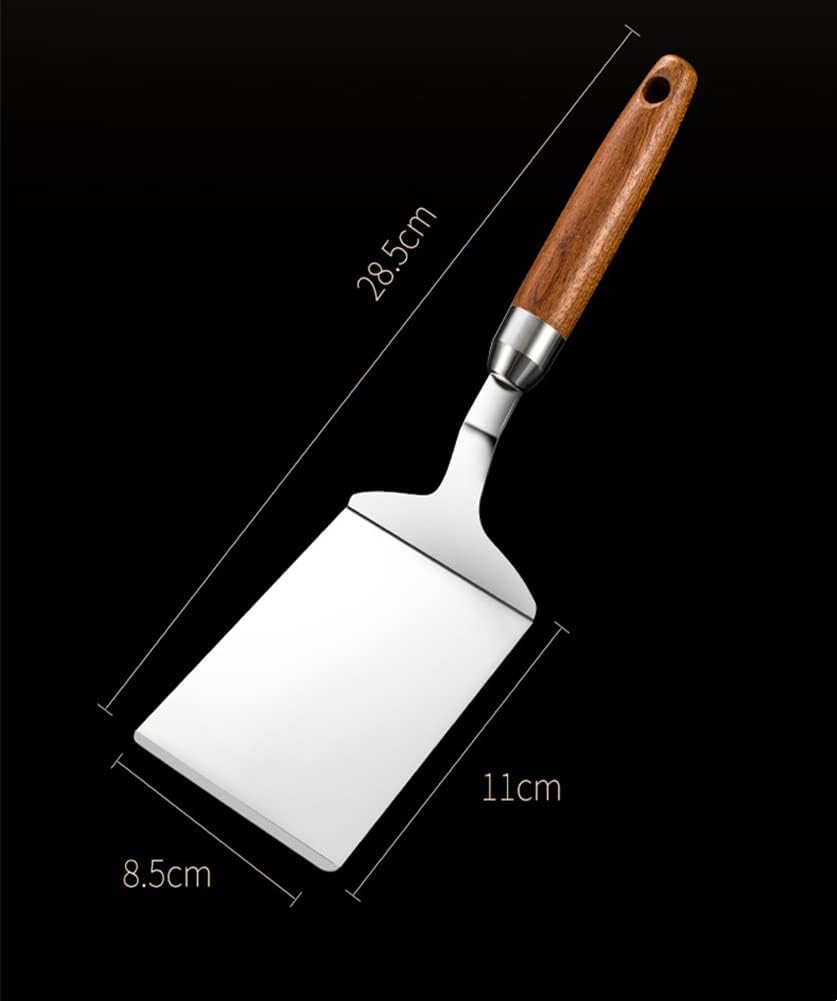 Professional quality: Made of food grade 304 stainless steel and wooden. Safe, rustproof, durable and will last long. Great for use as pancake turner, fish turner spatula, griddle spatula, kitchen spatula, bench scraper.