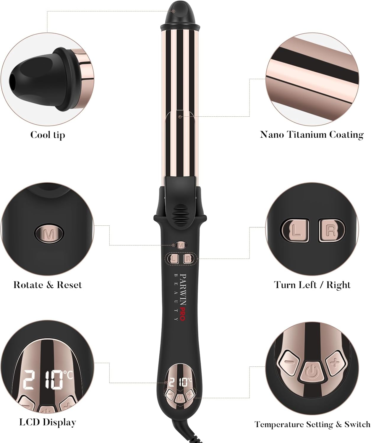 360° Rotating Automatic Hair Curler, PARWIN PRO BEAUTY 25MM Hair Curling Wand, Nano Titanium Coating Curling Tongs, Rotating Curling Iron with LCD Display, 120-210℃