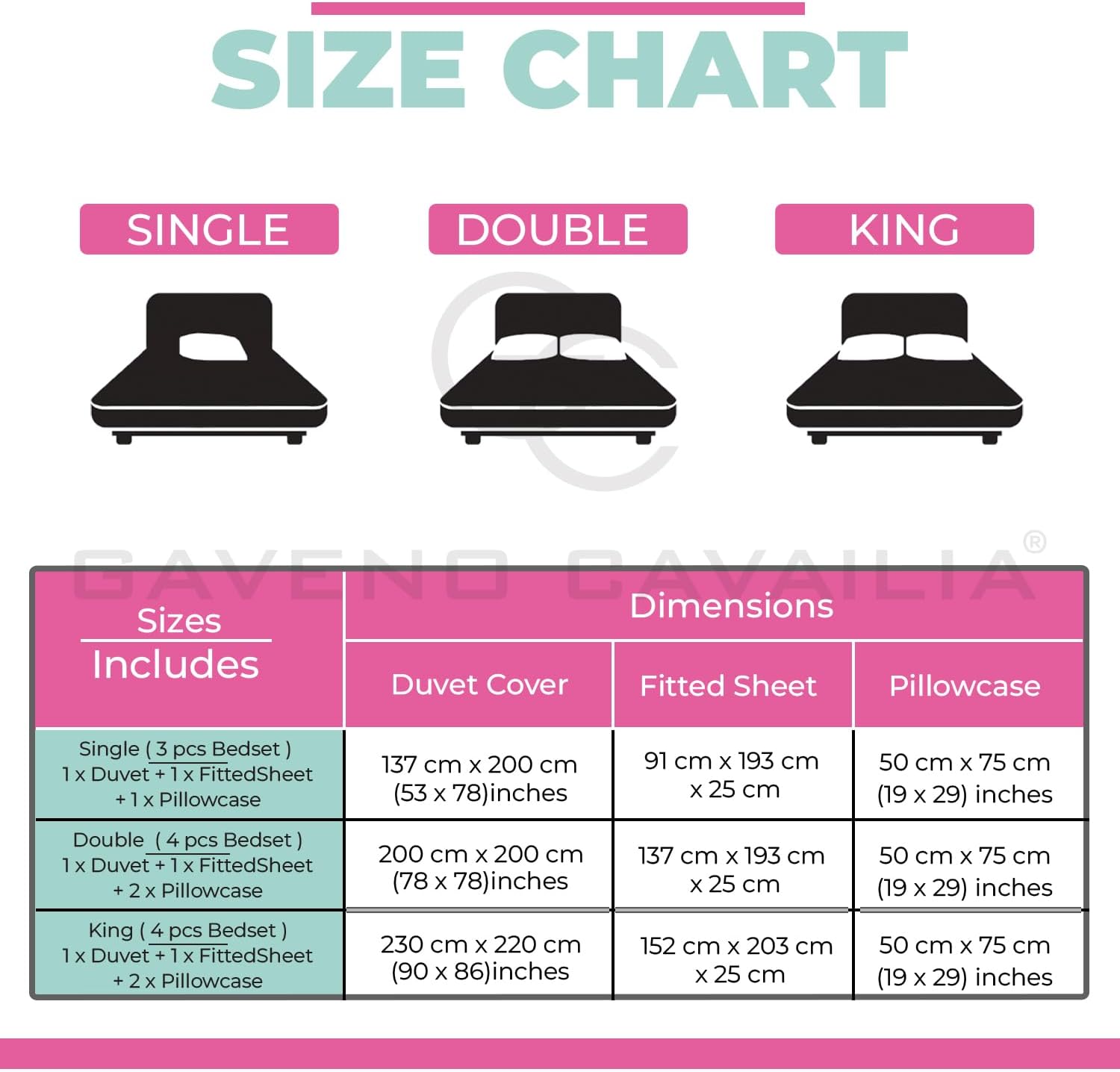 EASY CARE DOUBLE QUILT COVER SET: This double bed set with a fitted sheet set from GC GAVENO CAVAILIA has made with a polycotton fabric which offers you stress-free nights sleep. An easy-to-operate button closure will help you to put and take off the floral quilt cover set quickly and easily, so change your elegant extra soft bedding at any time.