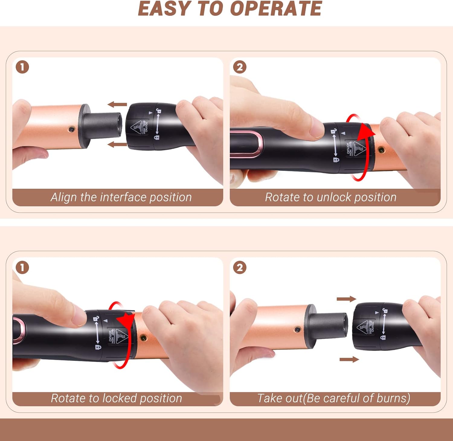 🌺【Anti-Scalding Design】: Anti-scald design and open-lock button are easier to insert and take out all barrels, fixing it more tightly. The support bracket protects your table from being burnt and speeds up the cooling of the curling iron.