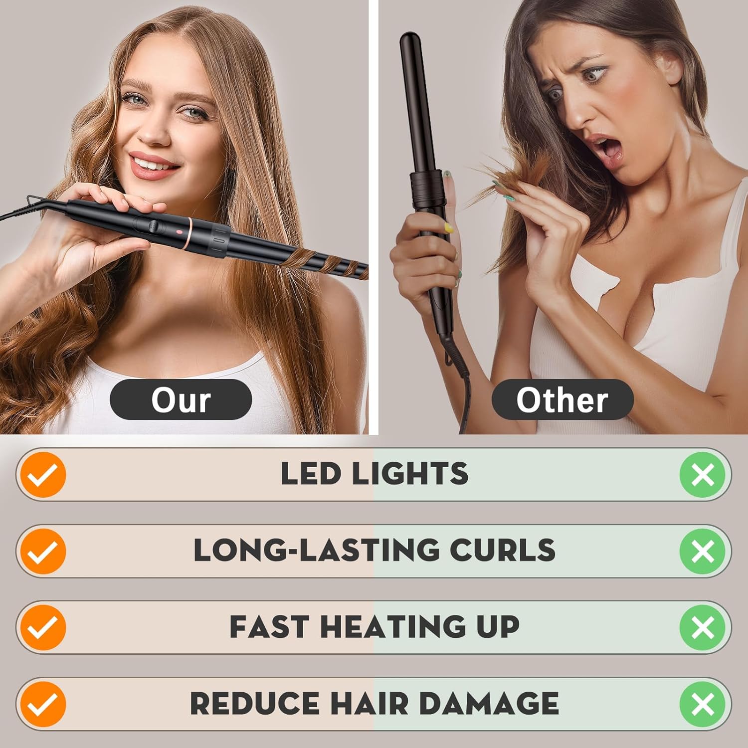 Our curling irons are made of high-quality materials, the temperature can be stabilized after reaching the temperature;