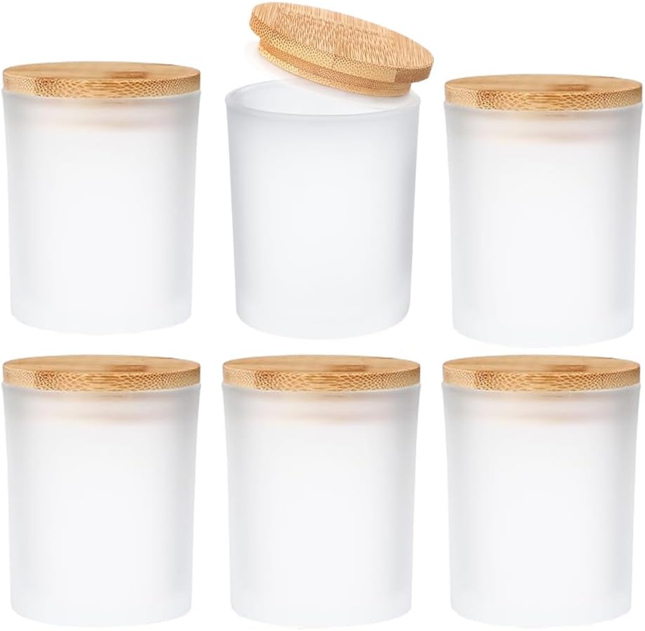 6 Pack 10oz Glass Candle Jars with Bamboo Lids, Matte Black – Empty Candle Containers for Bulk Candle Making Supplies