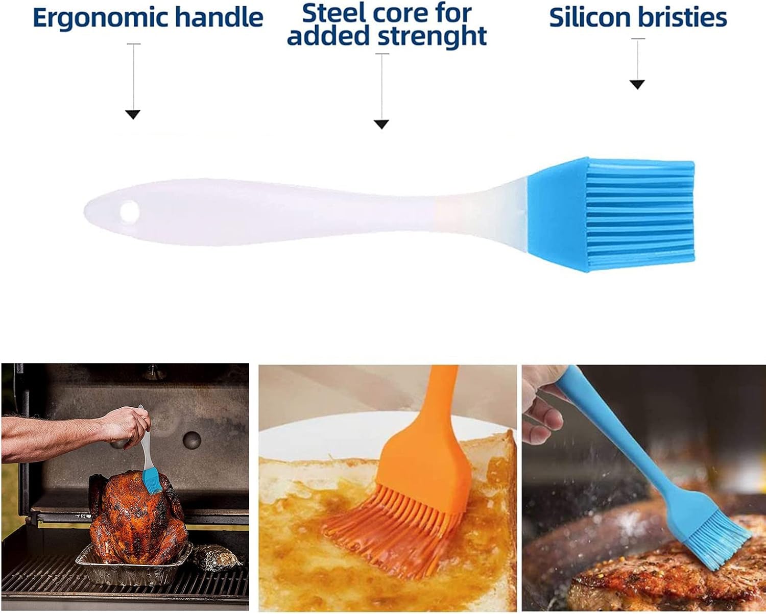 ✅Perfect brush: The brush can hold a generous amount of liquid and spread your food more evenly. Just spread oil or sauce on the food surface.