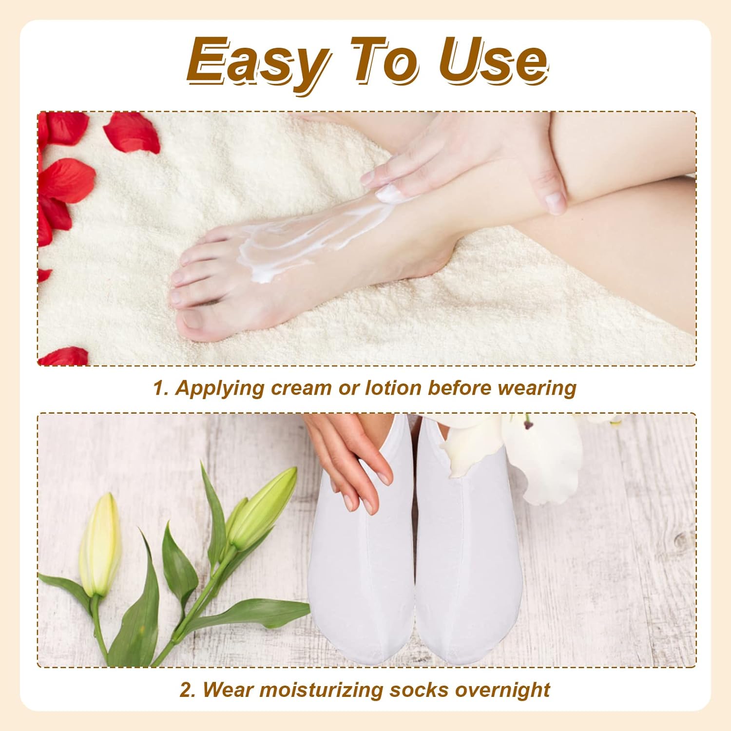 🧦Moisturizing and Breathable Socks: Socks measure approx is made of cotton and spandex, which is very breathable and will not make your feet feel stuffy, cotton feet socks allow you to apply lotion to your feet while still moving about normally.