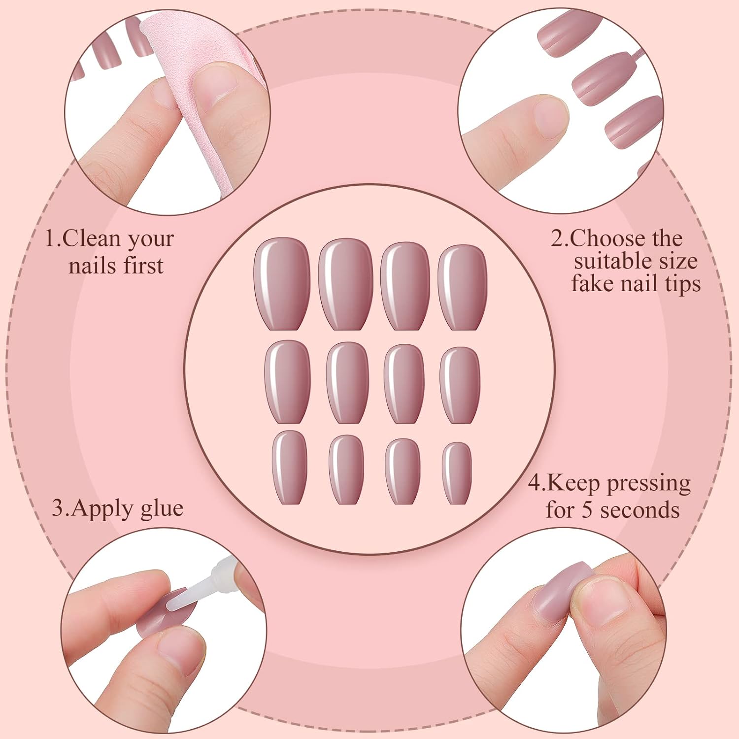 Ballerina coffin style: our artificial fake nails feature classic ballerina coffin design with square heads, chic style with glossy texture look pretty and charming; The solid colors not only look elegant, but also provide you with a lot of convenience to match with other nail decorations to create your own styles of Nail Design, which will show your personality and characteristics fully