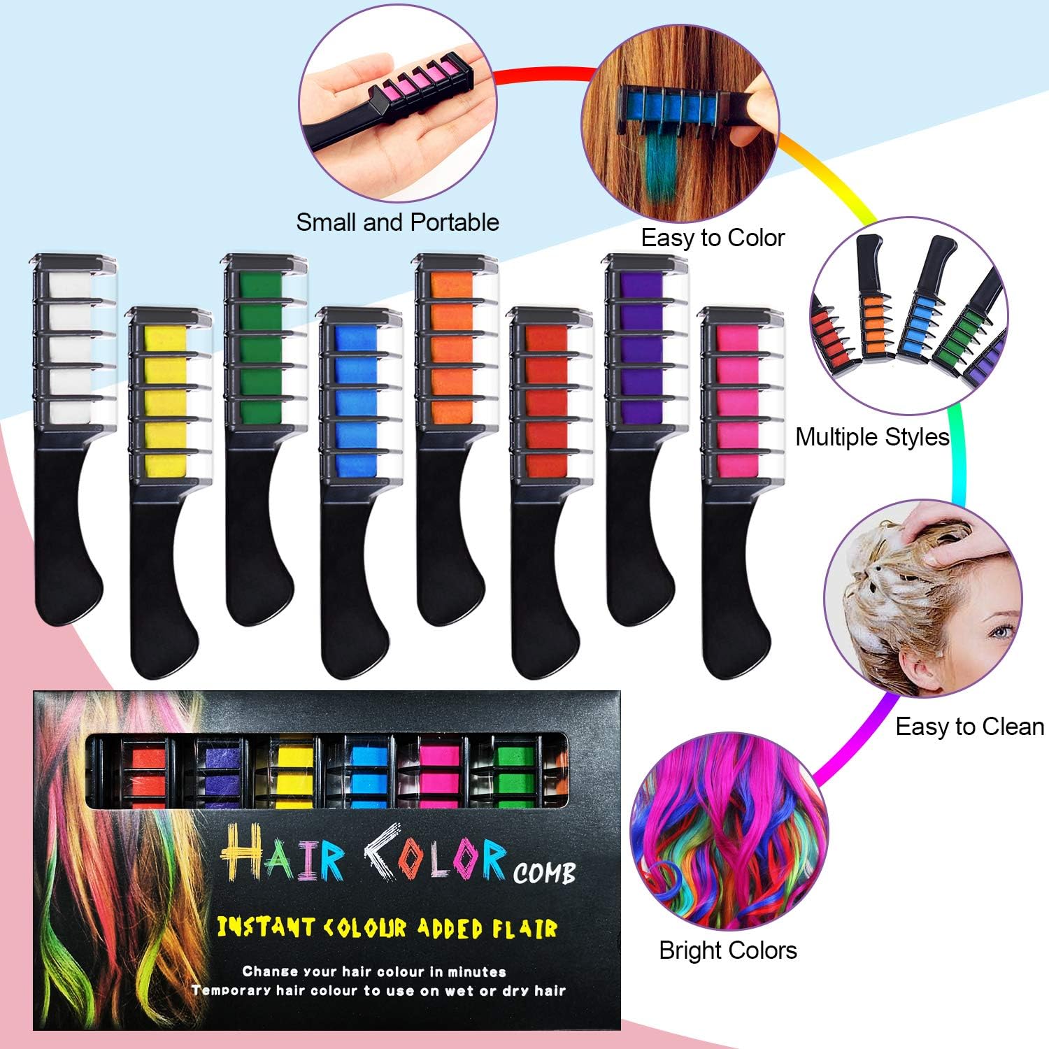 【Various Colors】 There are 8 colors to choose from. Easy to color, easy to clean, and can be colored by directly combing. Color your hair with different outfits or different colors. (Hint: your hair color is lighter (such as blonde hair), then the color is darker; if your hair is dark brown or black, it is recommended that you choose a bright color for best results.) Please understand that there may be some pictures The color tone is slightly different from the actual color tone!