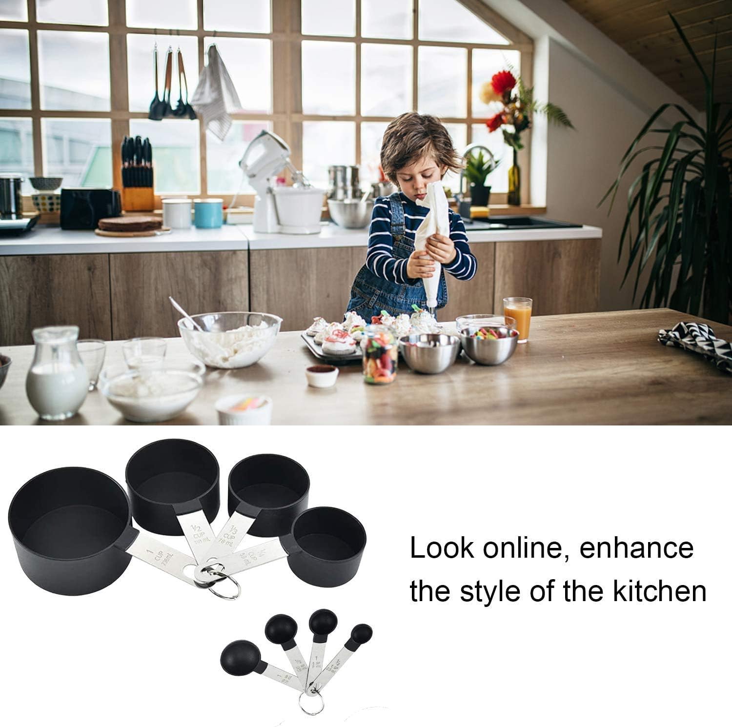 8 Piece Measuring Cups and Spoons Set, Plastic Measuring Cup and Spoon with Stainless Steel Handle, Measuring Tool for Liquids and Solids,for Cooking Kichen (Black)