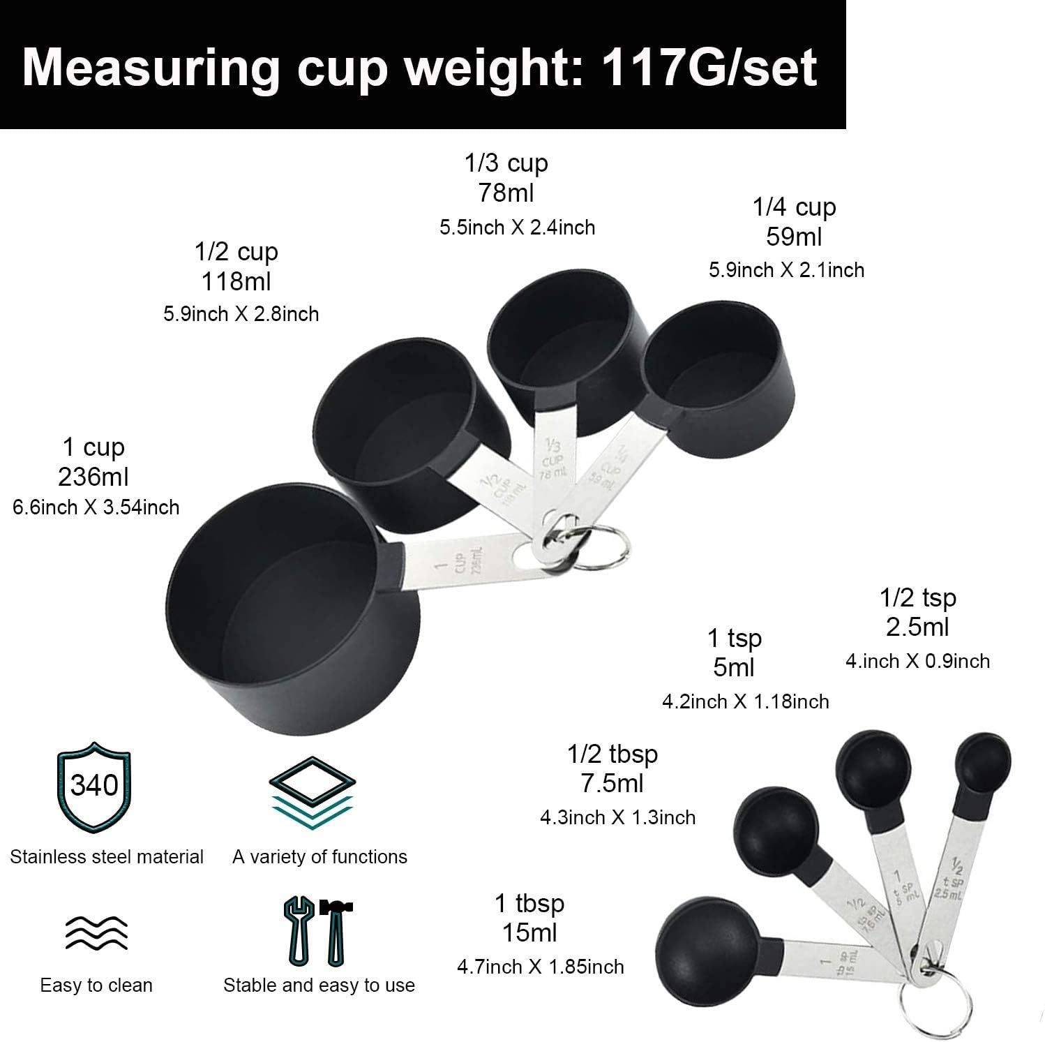 【Precise Scale & Volume】The stainless steel handles are engraved with visible standard metric units to ensure that you are using the correct measurements. Comes with 8 different sizes of cups and spoons to satisfy your daily needs.