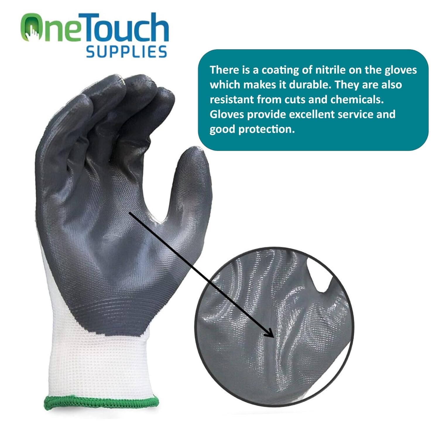 A406 24 Pair work gloves Nitrile Coated White Grey Nylon Safety Work Gloves Garden Gloves Builders Gloves Mens Gardening (Large)