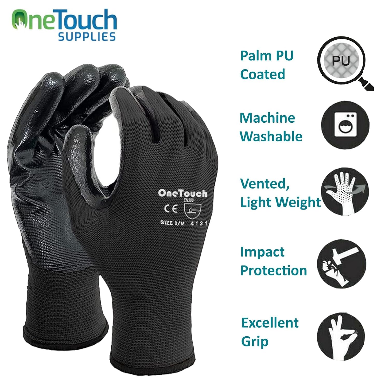 A406 24 Pairs Black Nitrile Coated Work Gloves Nylon Safety Work Gloves Garden Gloves Builders Gloves Mens Gardening (Large/9)