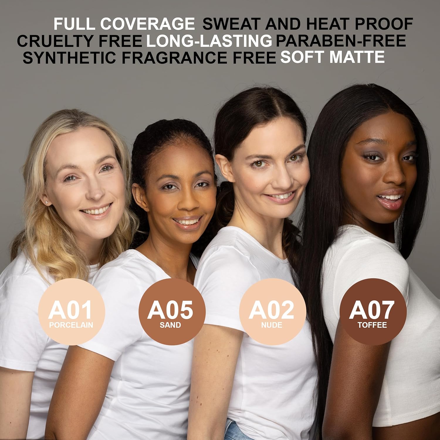 Blends Flawlessly Flawless Blending: Seamlessly merge colors and textures for a natural finish.Smooth Application: Creamy texture ensures effortless application.Even Skin Tone: Blur imperfections for an even complexion.Buildable Coverage: Layer for desired coverage without caking.Versatile: Compatible with brushes, sponges, or fingertips. Soft Matte Full Coverage up to 24 hours Soft Matte Full Coverage: Achieve a soft matte finish with full coverage.Smooth Application: Creamy texture ensures a smooth and even application.Conceals Imperfections: Covers pigmentation, freckles, acne scars, and dark spots.Long-lasting Wear: Stays put for up to 24 hours without the need for touch-ups.No Caking or Creasing: Provides seamless coverage without caking or settling into fine lines.Waterproof and Sweat-proof: Resistant to water and sweat, ensuring makeup stays flawless. Oil Control, Lightweight, Naturally Flawless Oil Control: Maintain a matte finish all day, controlling excess facial oils.Lightweight: Enjoy a feather-light feel for effortless wear.Naturally Flawless: Achieve a radiant, flawless complexion.Long-lasting: Stay flawless from morning to night.Breathable Formula: Let your skin breathe comfortably.Effortless Application: Apply smoothly for quick, flawless results.Minimize Pores: Blur imperfections for a refined look.Buildable Coverage: Customize your coverage for any occasion.Flawless Finish: Look and feel naturally beautiful all day.