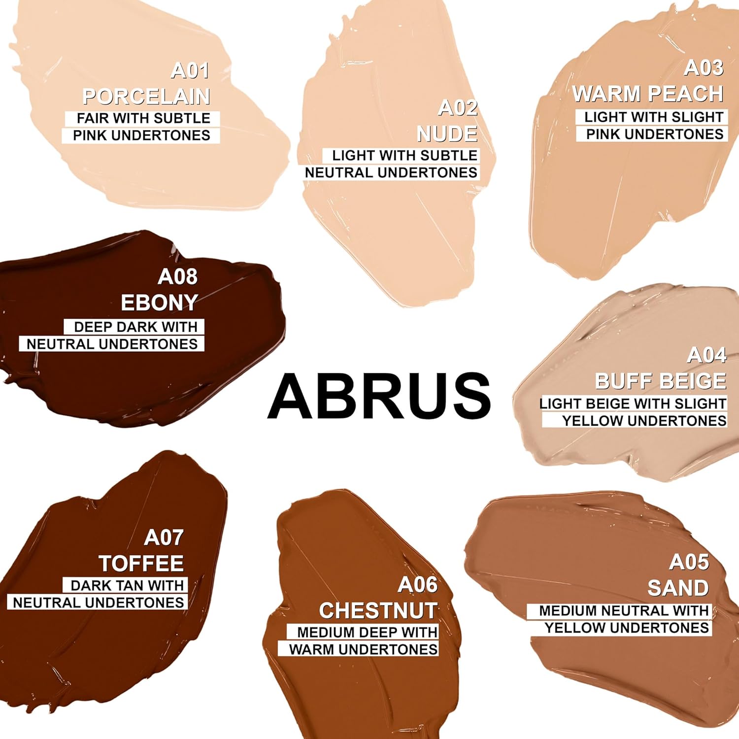 Achieve a flawless complexion that lasts with ABRUS Foundation Makeup. Our soft matte liquid foundation is designed for women, men, and everyone, offering full coverage and a lightweight, creamy feel for a natural look.
