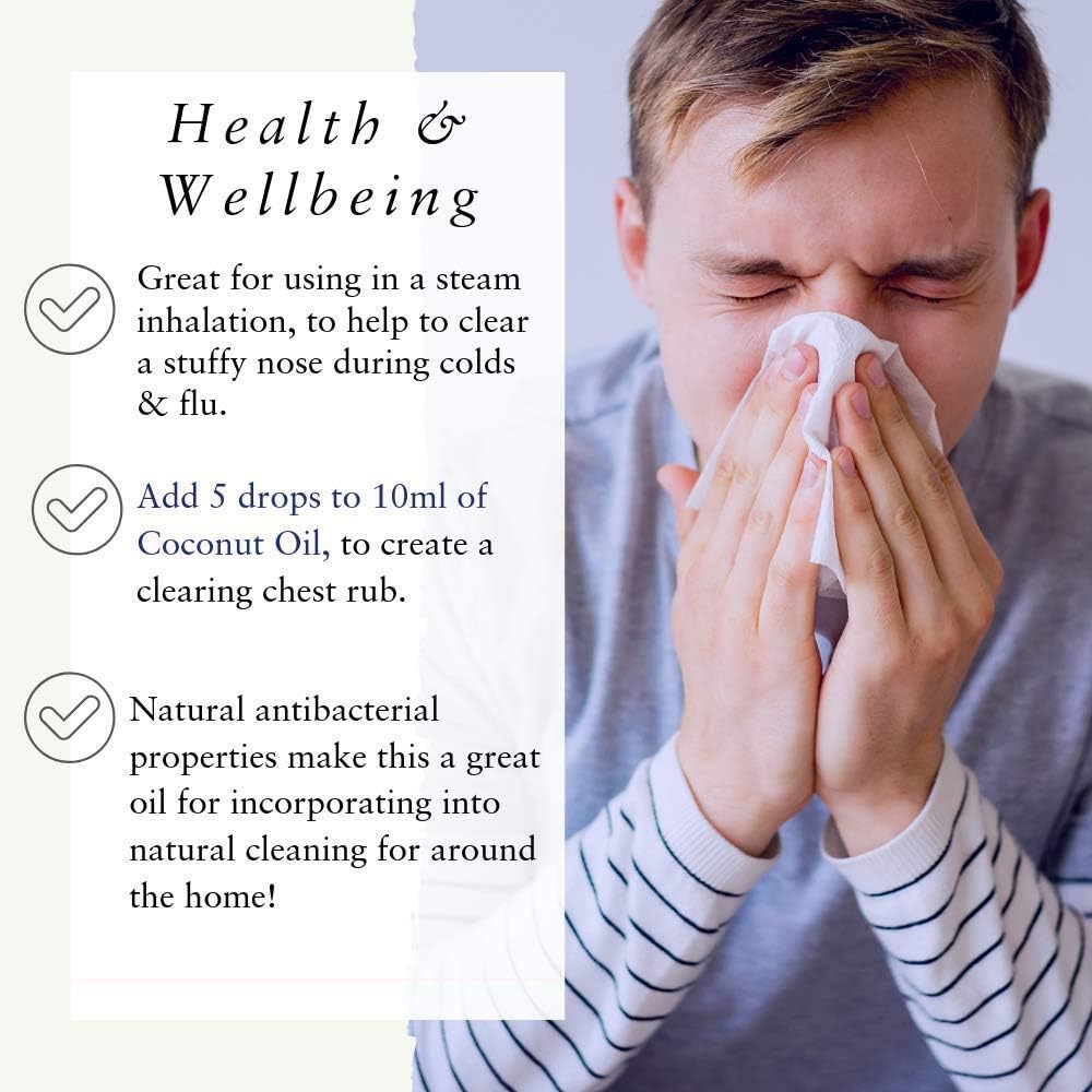 BODY & MIND – Eucalyptus has uplifting and refreshing properties that can help to clear the mind and aid concentration. Whilst offering clearing relief from heavy heads and stuffy noses.