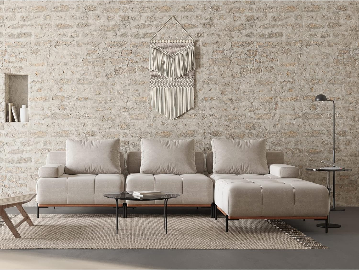 This Acanva modular sectional sofa is made from premium suedette fabric and has a sturdy wood frame and iron legs. Easy assembly and maintenance. If you want to find a perfect small solution for your living room or apartment, this single sofa chair is the best choice. Ottoman, chaise, couch, L-shaped, U-shaped, you can arrange varieties of combination as your preference. Available in three colors, beige, brown and green. Freely mix and max modular units with different colors to inspire your lounge area.