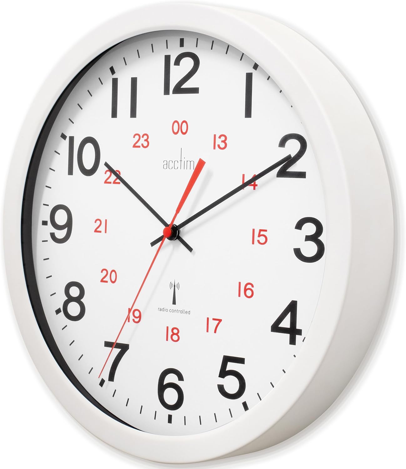 Acctim Wall Clock Radio Controlled 30cm Wht 74172, Metal, White, 30cm x 30 cm