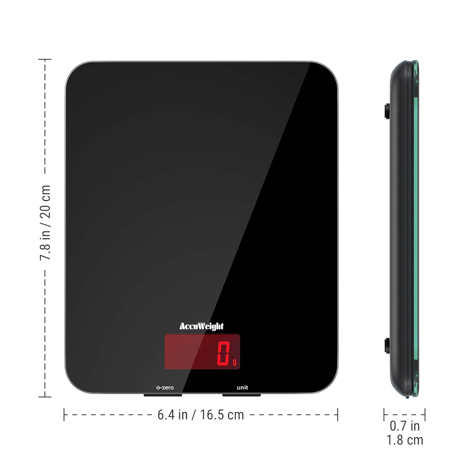ACCUWEIGHT 201 Digital Kitchen Scales with Tempered Glass Platform Electronic Weighing Food Scale with Backlit LCD Display Multifunctional, for Office School Home Baking Cooking, 5kg/11lb