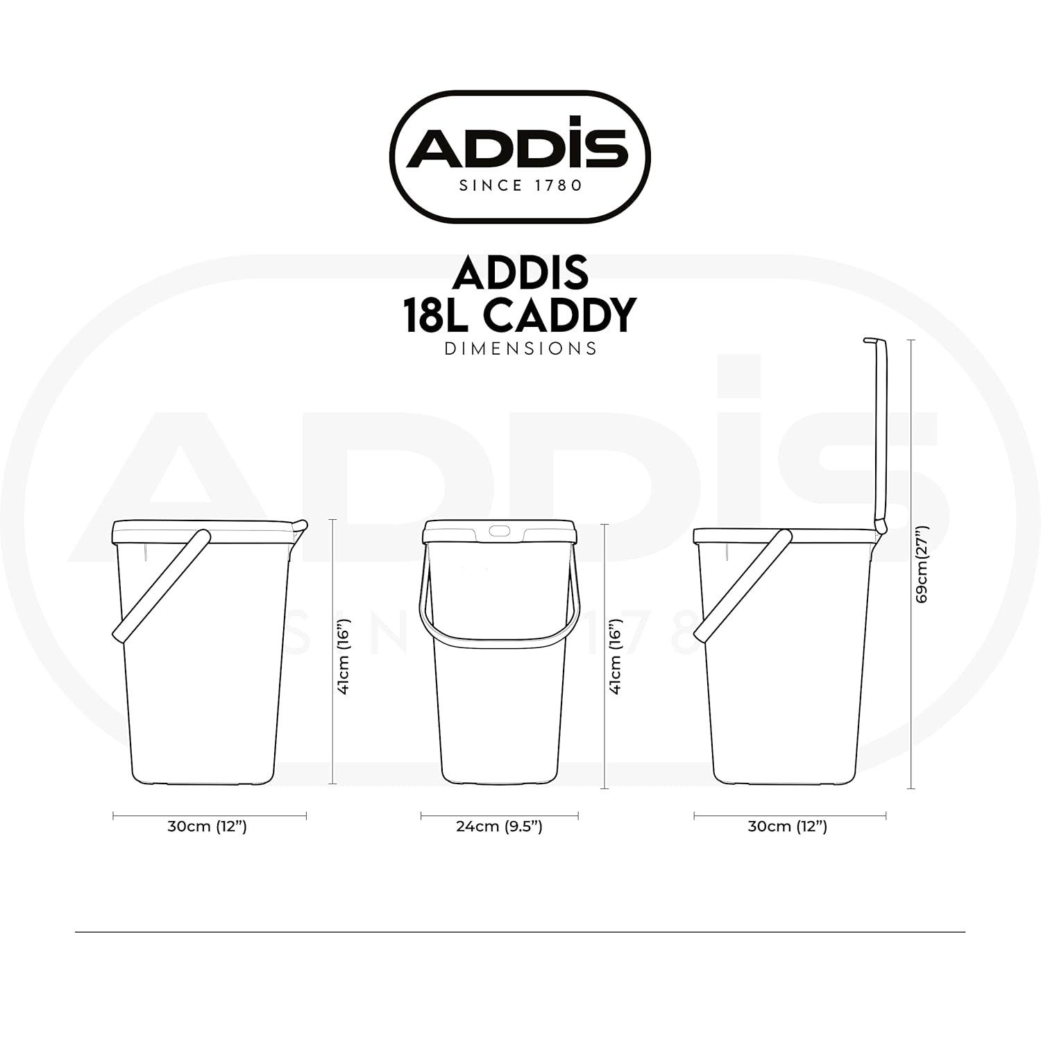 Can also be used as a cleaning, utility storage caddy or larger food waste bin with carrying handle and clip lock with detachable stay open lid