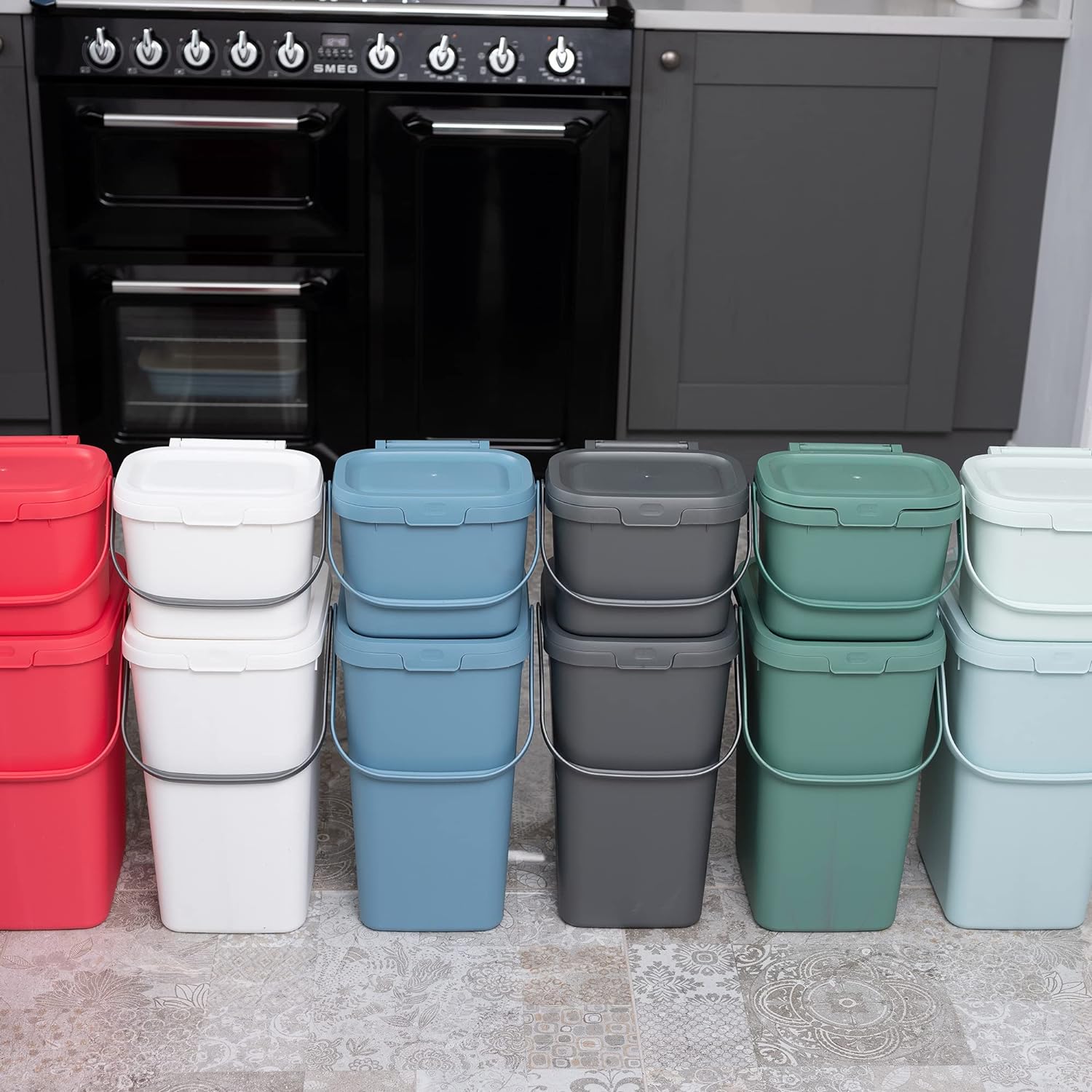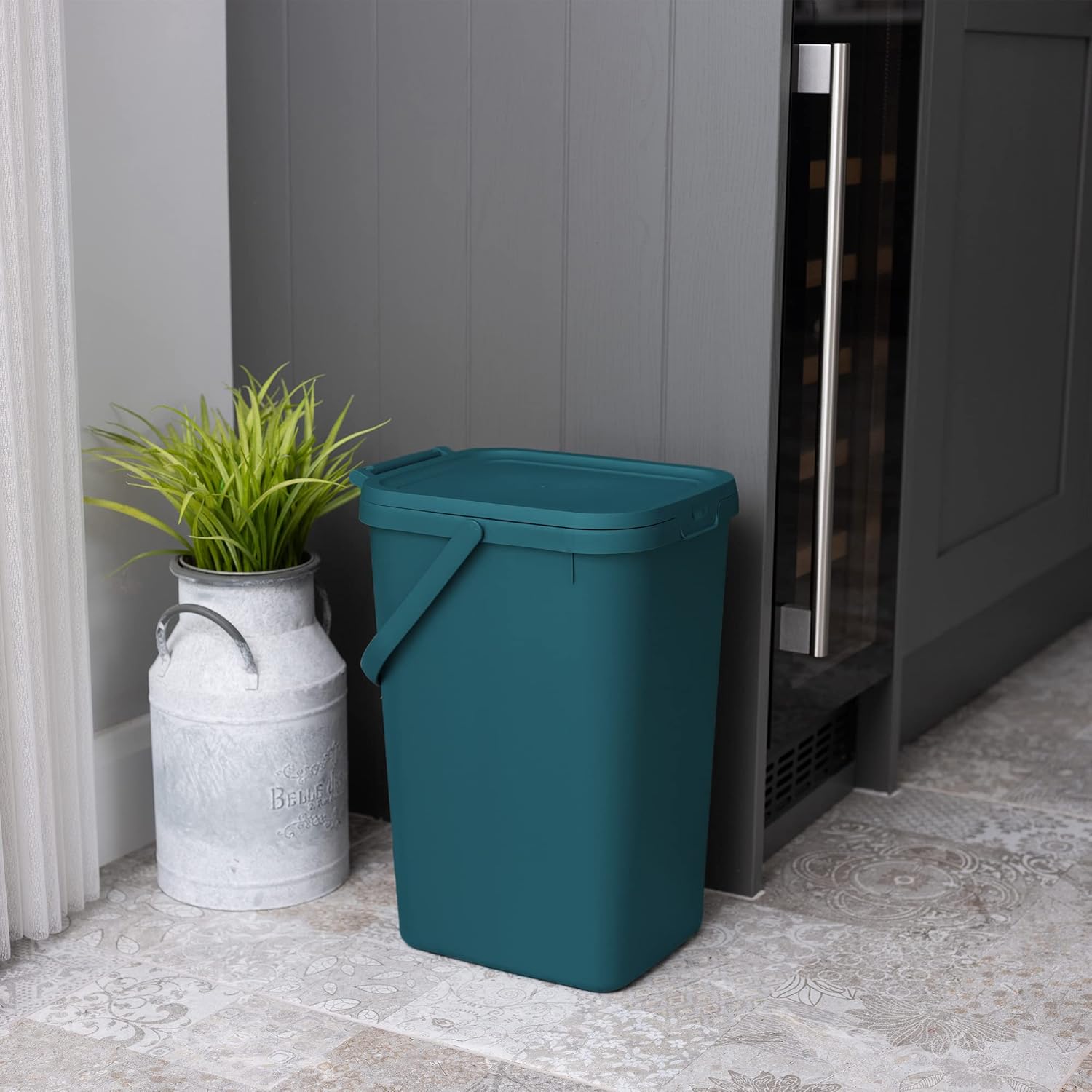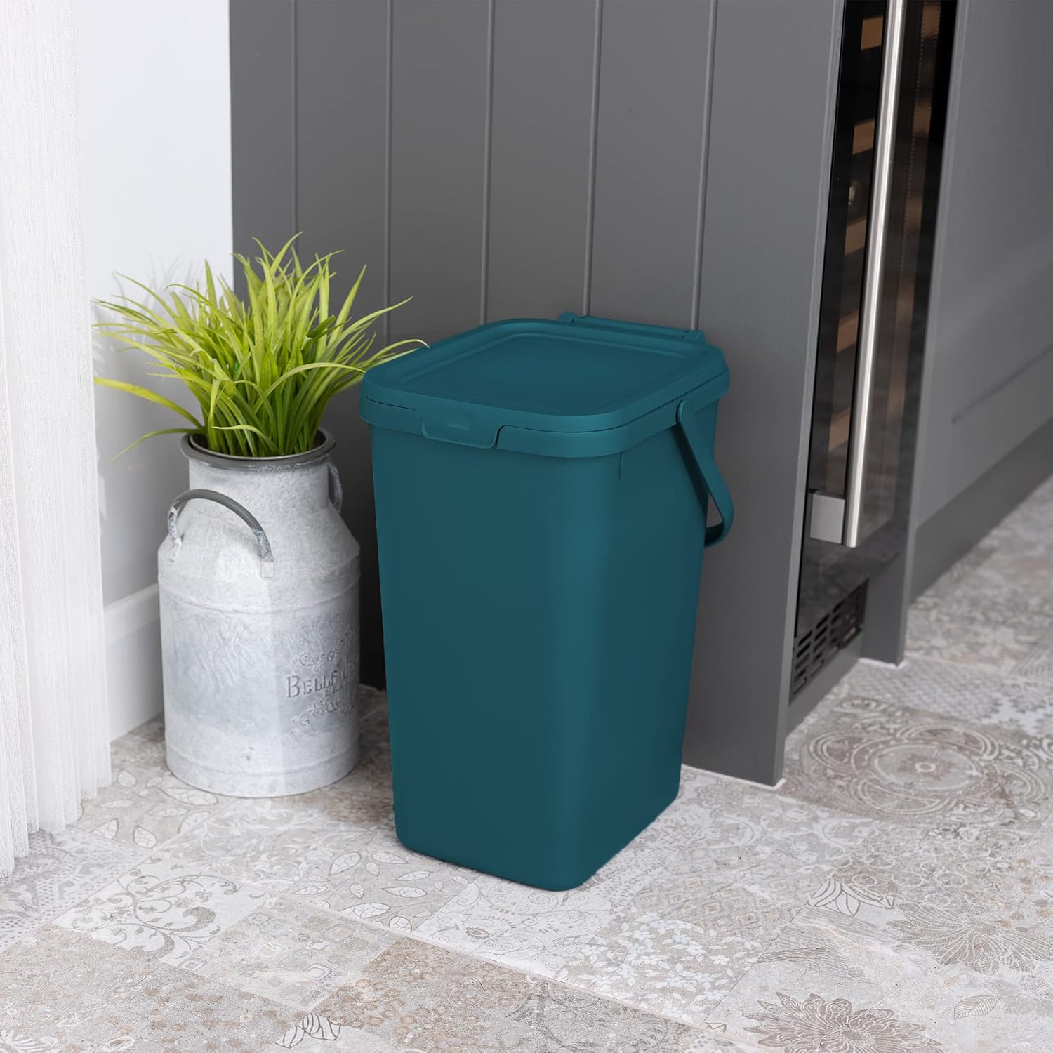 Addis 519354 Kitchen Recycling & General Storage bin 18 litres Stackable Food Waste Organiser Caddy with Clip lock lid & carrying Handle, Deep Teal Green