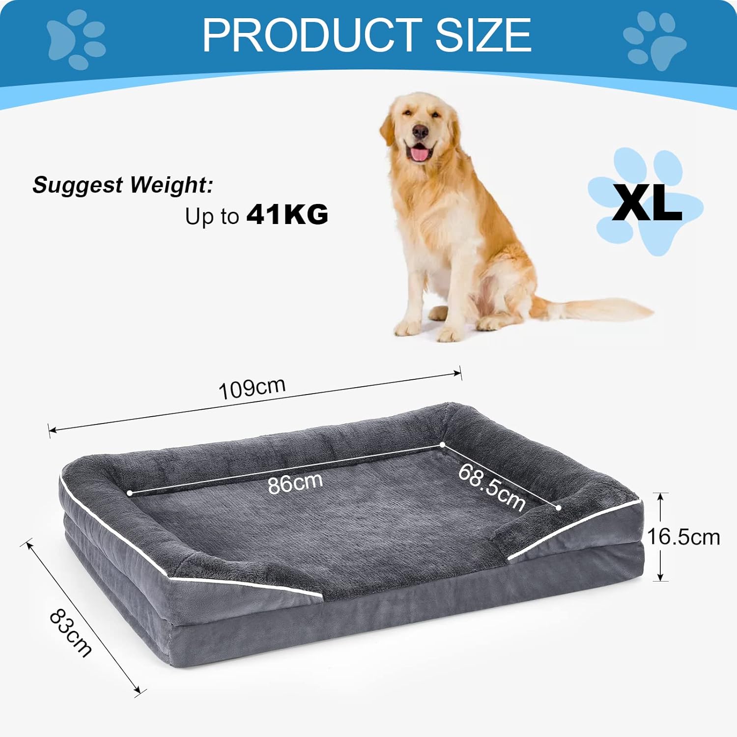 Afoddon Orthopedic Dog Bed for Extra Large dogs up to 41 kg, Thick Egg-Crate Bolster Dog Sofa Couch Bed with Removable Washable Cover and Nonskid Bottom Pet Sofa beds for Comfortable Sleep