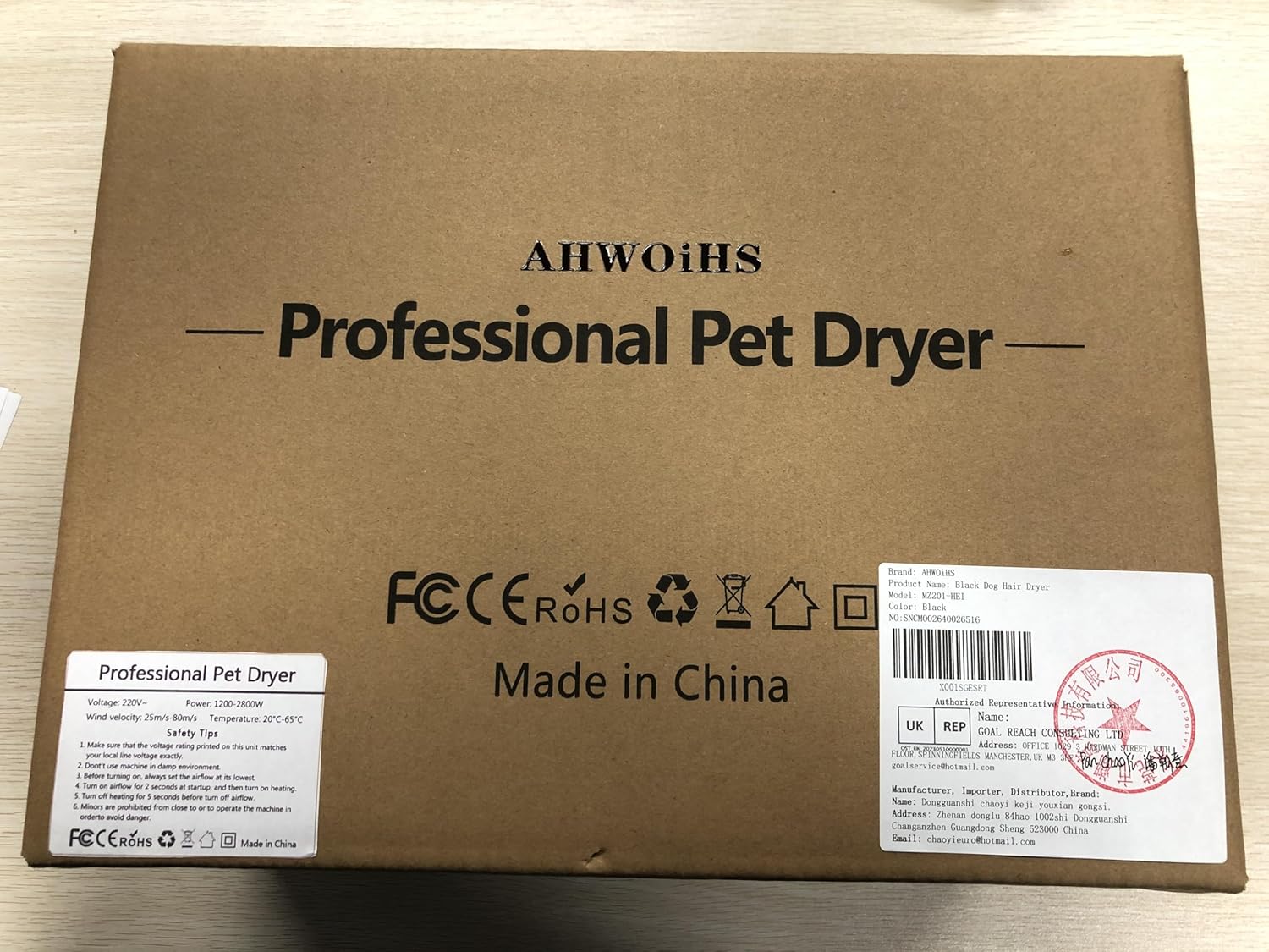 Weight: 2.4KG (excluding accessories and hoses)Dimensions: 33×16.5x24cm (excluding hose length)Output power: 2800WVoltage: 220VHeating temperature: up to 55°C, available in four seasonsWind speed: 20M/s-100M/s, meeting the drying needs of all pets.